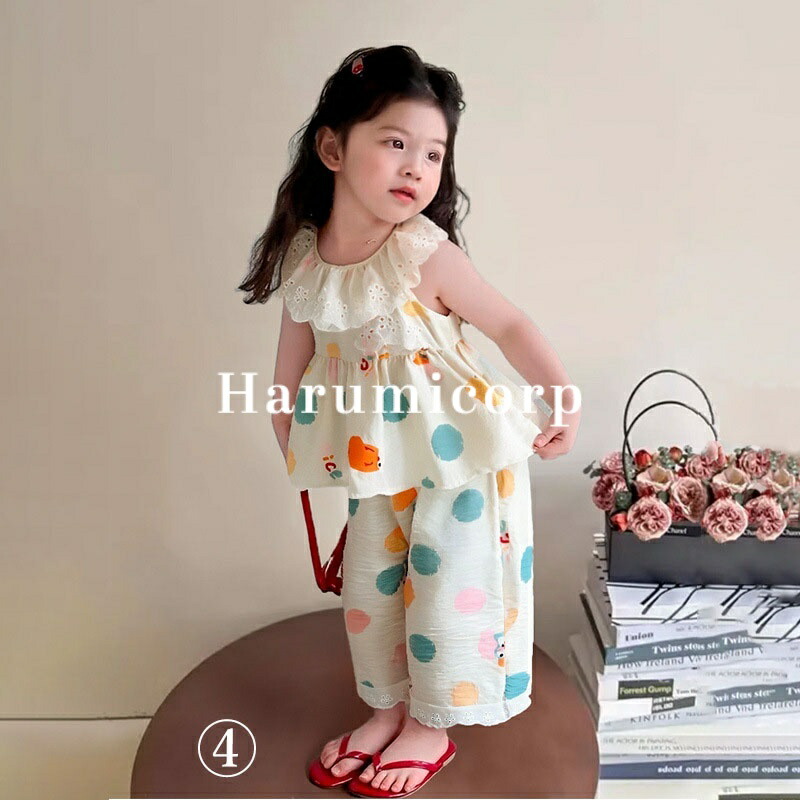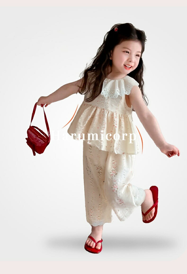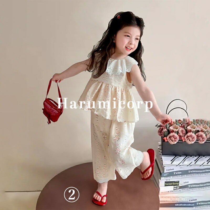 セットアップ キッズ 女の子 ベビー服 上下セット 春 夏 トップス レース ガウチョパンツ 花柄 子供服 tシャツ ズボン ジュニア 赤ちゃん ダンス衣装 おしゃれ 可愛い 入園 幼稚園 小学 入学