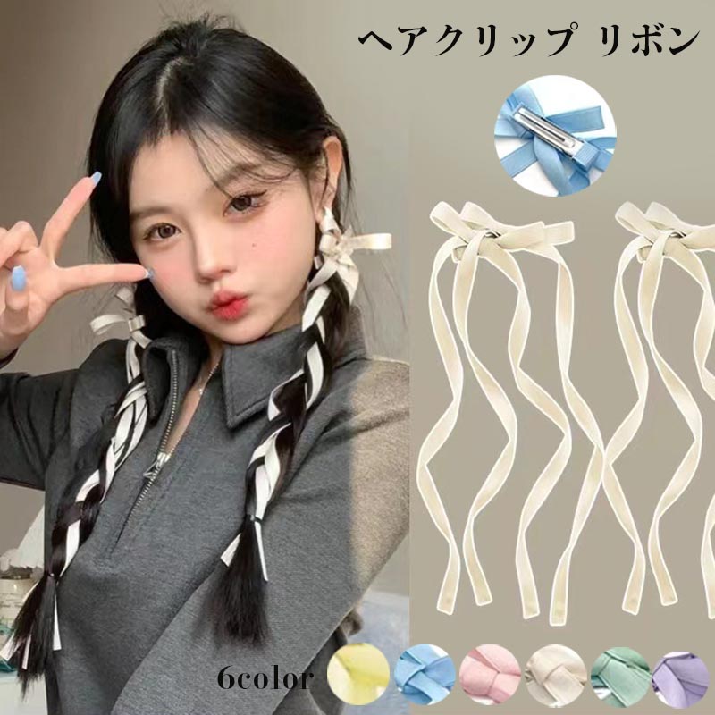 ヘアクリップ リボン レディース 女性 ジュエリー アクセサリー 早い者勝ち ブルー ピンク ベージュ グリーン パープル イエロー