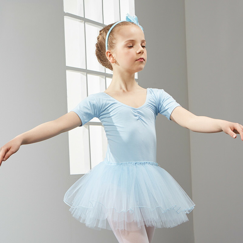 子供用 半袖 スカートキッズ レースバレエ衣装 女の子 スナップボタン キッズウェア 体操 ダンス 練習服 ステージ衣装 シンプル ワンピース レッスン着 ピンク パープル 110 120 1 ブルー