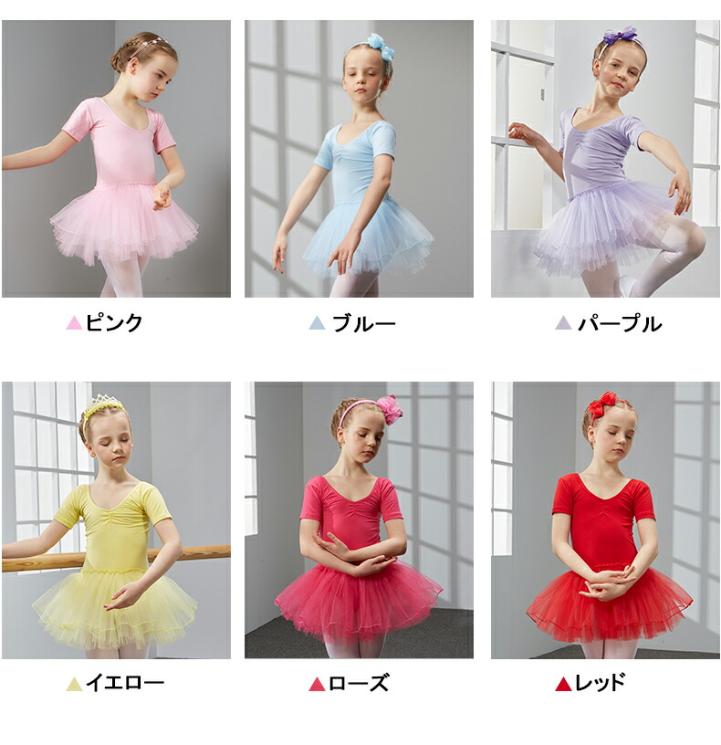 子供用 半袖 スカートキッズ レースバ 体操 ダンス 新体操 レオタード キッズ ジュニア用レオタード 続々入荷中 110cm 120cm 130cm 140cm 150cm ピンク ブルー パープル イエロー レッド ローズ