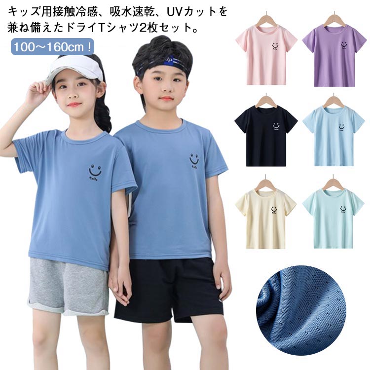 キッズ 2枚セット Tシャツ UVカッ キッズ ベビー マタニティ 新登場! 2枚ピンク 2枚ブラック 2枚ブルー 2枚イエロー 2枚パープル 2枚グリーン 100cm 110cm 120cm 130cm 140cm 150cm 160cm
