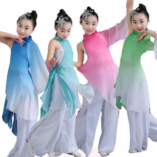 グラデーションの中華風衣装 古典ダンス 傘ダンス センスダンスなどに非常に相性