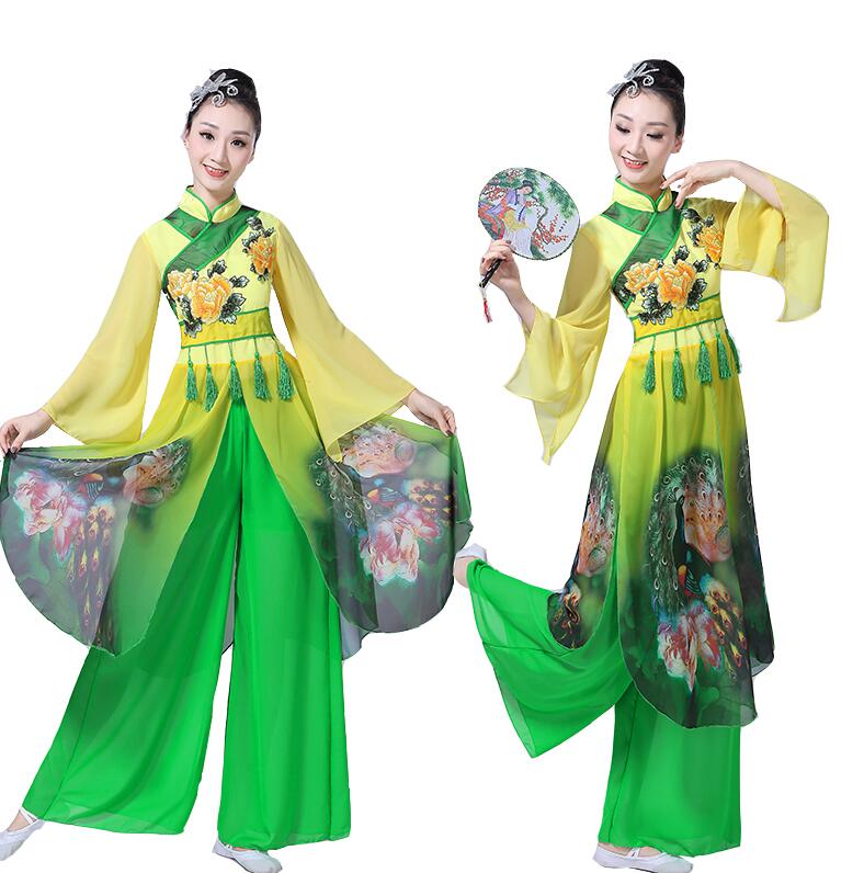 レディース舞台演出服 新作 チャイナ服 中華風演出服 古典ダンス衣装 扇子ダンス衣装 傘ダンス衣装 ステージ衣装 大人 ダンス衣装 セットアップ フリンジ付 コスチューム 2色 S-3XL エスニック