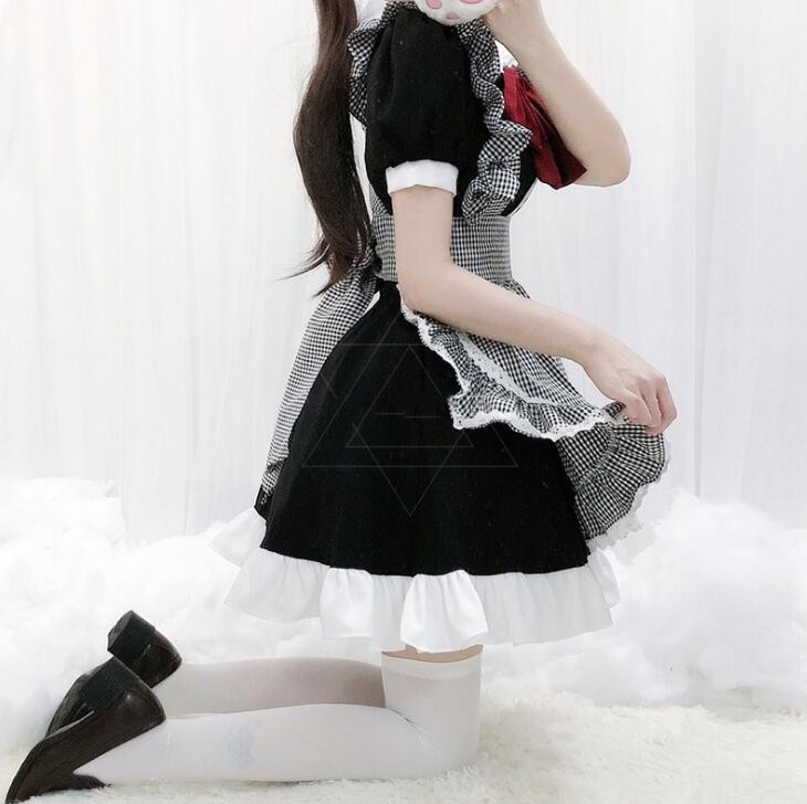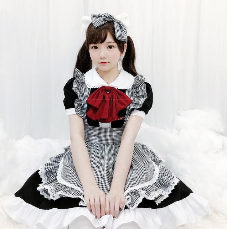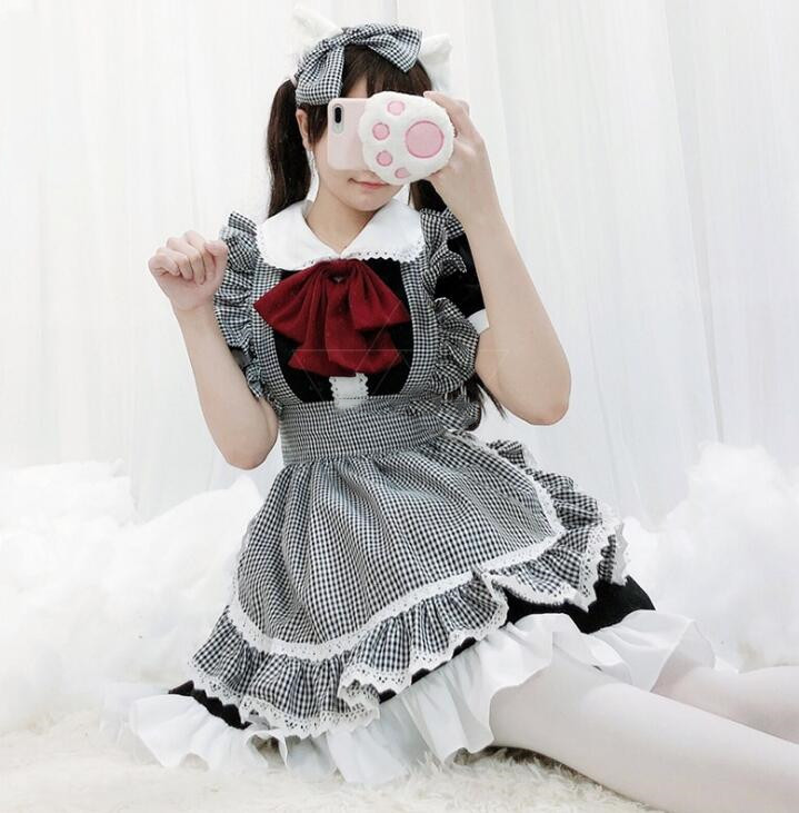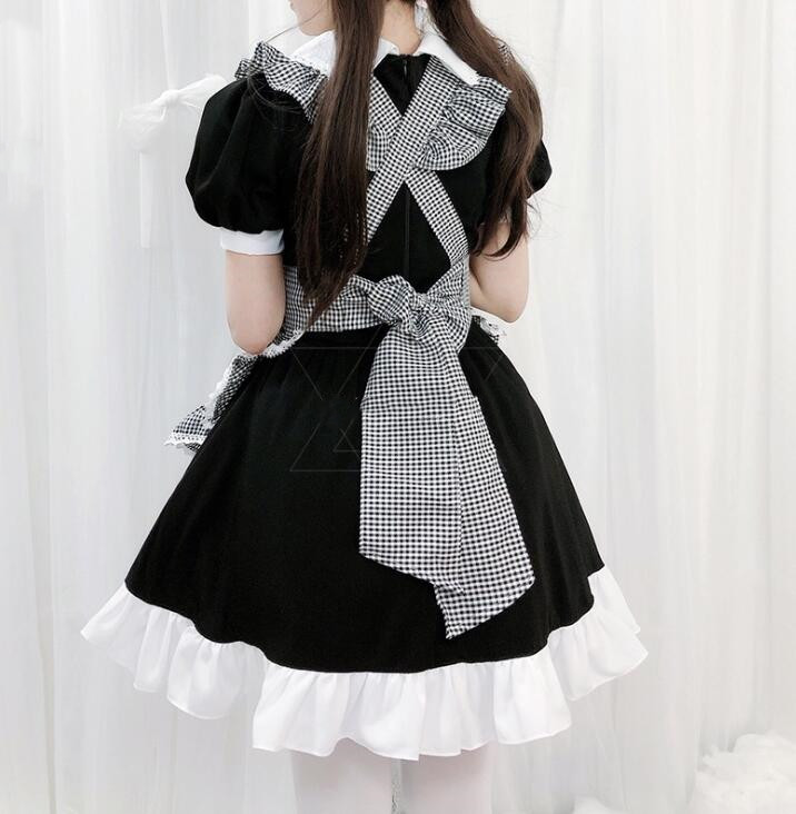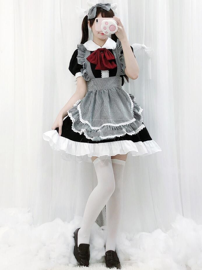 レディースハロウィン衣装 大人 ハロウィンドレス ハロウィンワンピース メイド服 チェック柄 エプロンワンピース ロリータ服 リボン 学園祭 文化祭 コスチューム コスプレ衣装