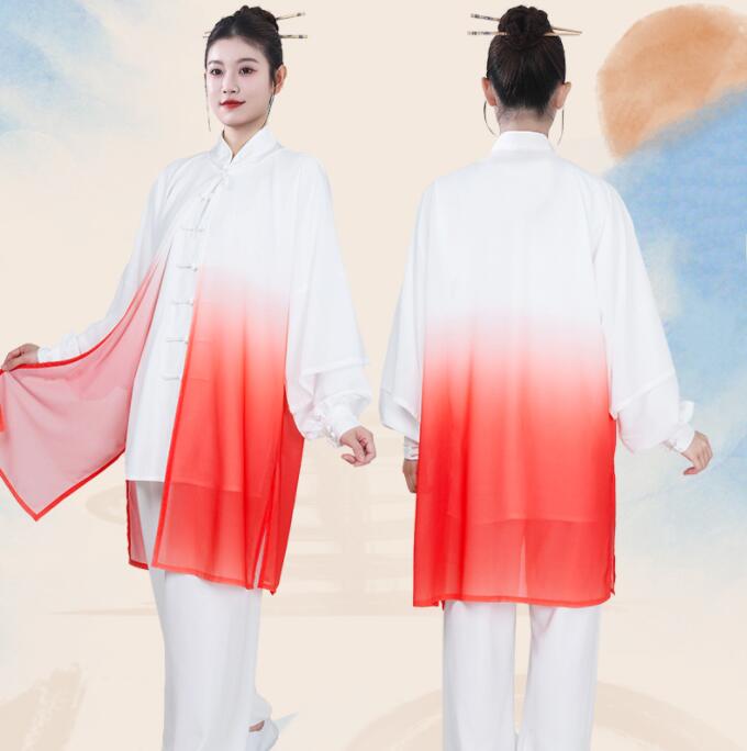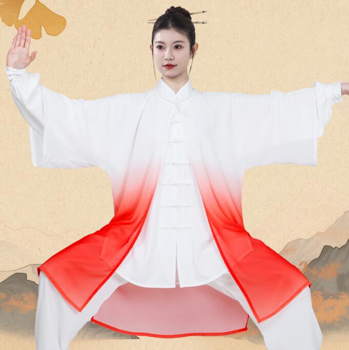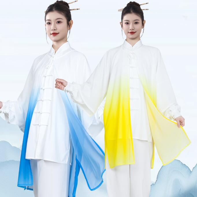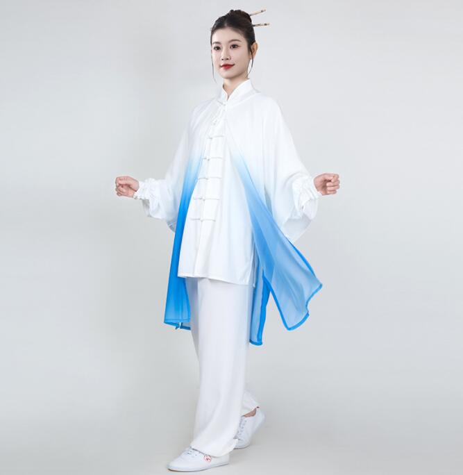 太極拳 服 男女兼用 太極拳ウェア グラデーション 羽織 ホワイト 上下セット 武術服 カンフー ウーシュー チャイナ服 武術 功夫 練功服 大極拳パンツ 文化祭 イベント 演出服 ス 学園祭