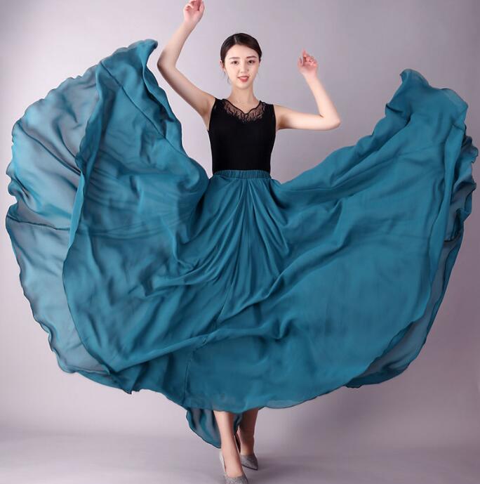 カラフル ダンススカート 720度 大きい裾スカート 広がる モダンダンス 社交ダンス シフォンスカート ダブル マキシ ロング丈 スカート 民族風 古典ダンス お揃い 団体演出服 1 舞台