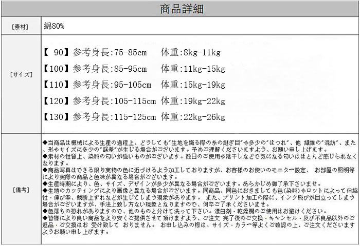 【100】参考身長:85-95cm 体重:11kg-15kg