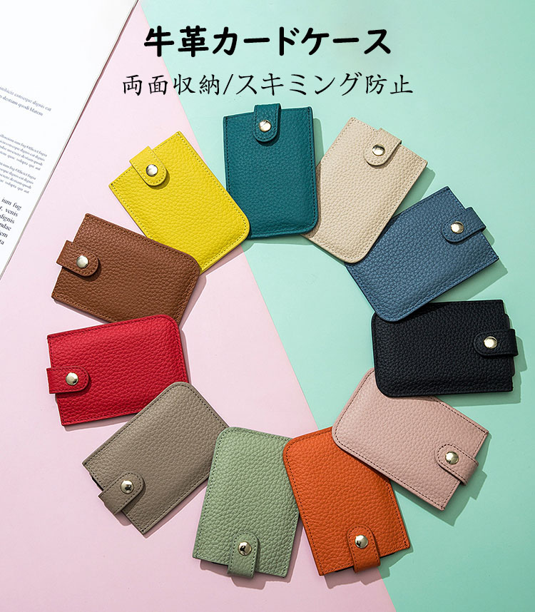 本革 牛革 カードケース 磁気 スキミ バッグ 小物 ブランド雑貨 特集 アースイエロー ブラック 湖青い オレンジ レッド ブルー イエロー ピンク グレー オフホワイト グリーン