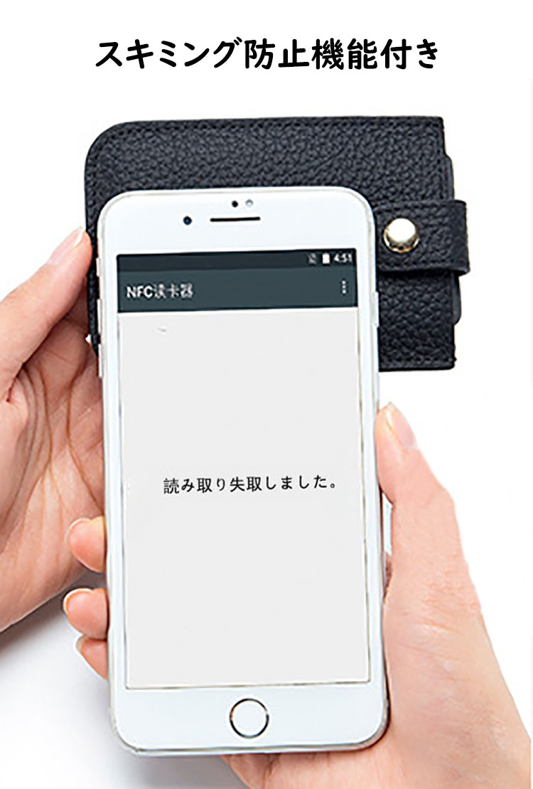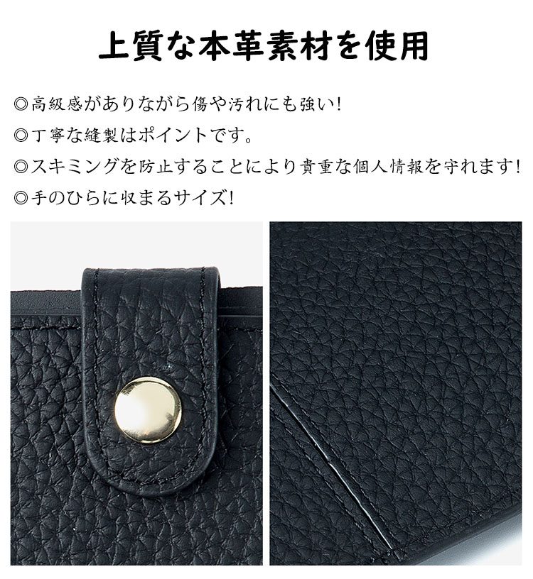 ※スキミング防止機能付き:外側の革と芯地の間に防磁素材を内蔵してあり、スキミングを防止することにより貴重な個人情報を守れます!