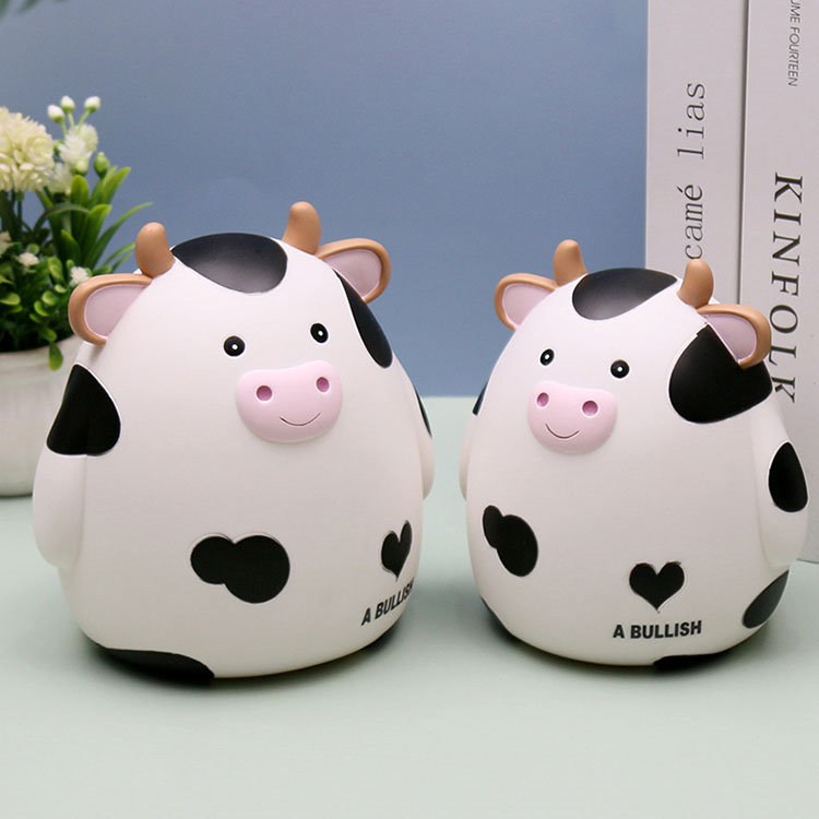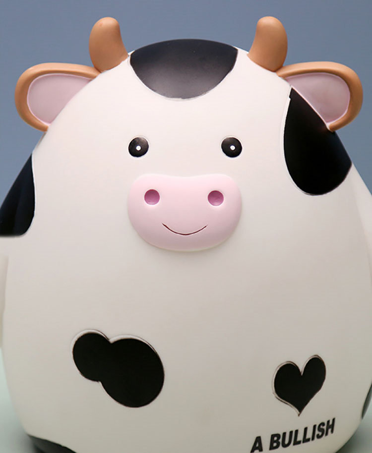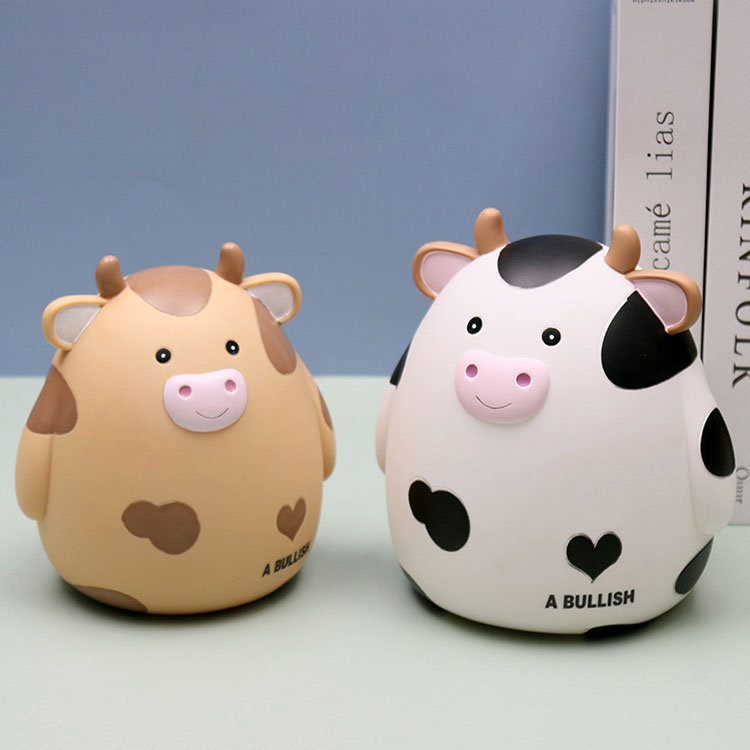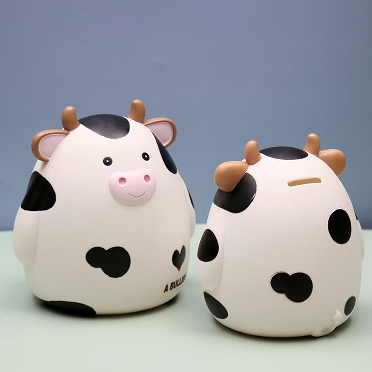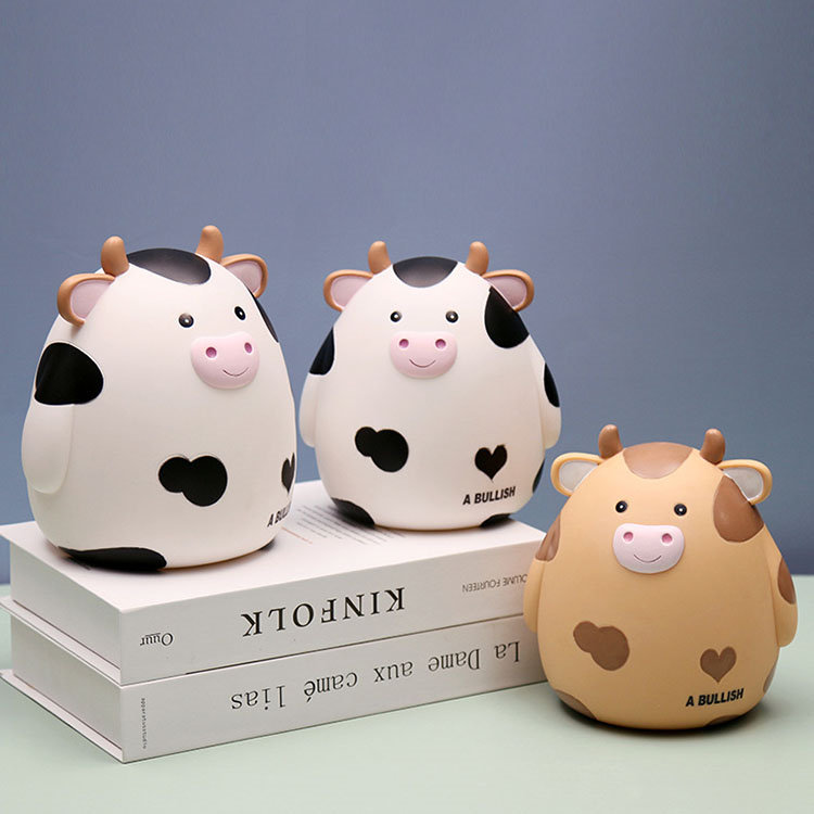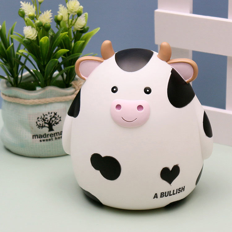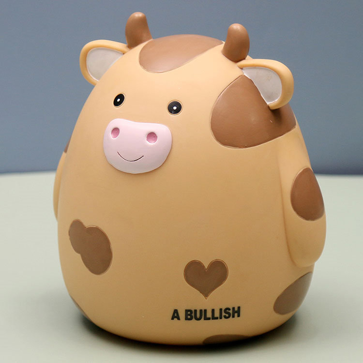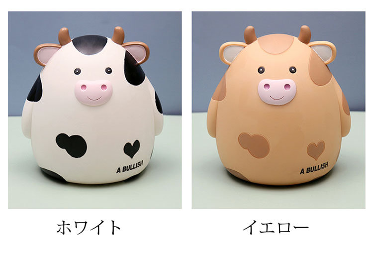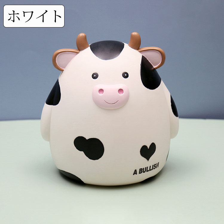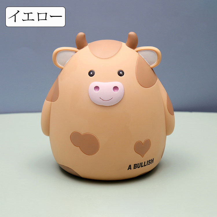 M:17.5*15.5*18.5cm 貯金箱 おしゃれ マネーバンク 子供 硬貨 コイン お札 紙幣 牛の形 可愛い 飾り付き 金庫 おもちゃ 大容量 小銭投入ボックス お年玉 コインバンク 子 お金