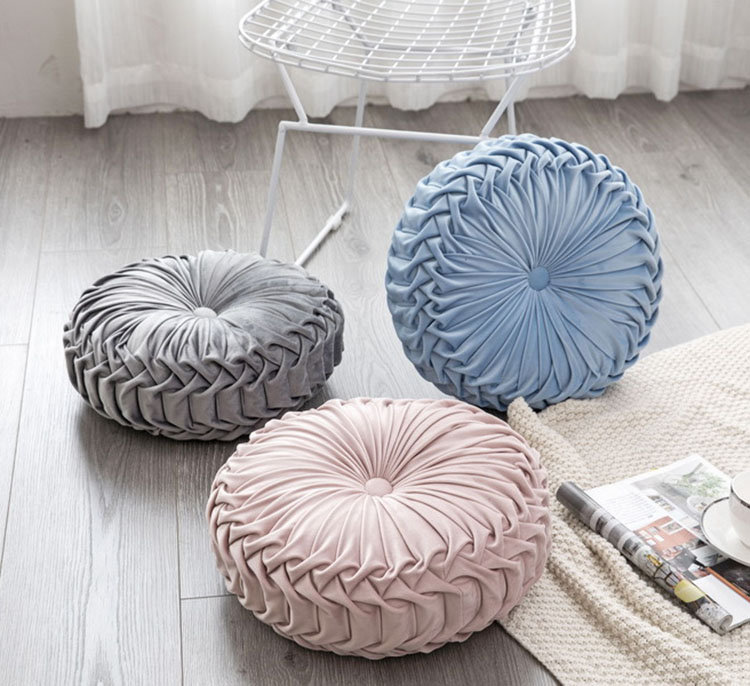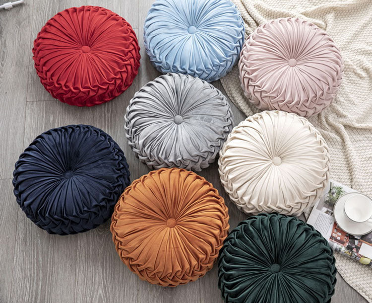 直径35*厚さ10cm クッション おしゃれ ラウンドクッション フロアクッション 座布団 丸型 円形 ギャザー プリーツ かわいい 丸 ラウンド 抱き枕 オシャレ 円形クッション 大きい