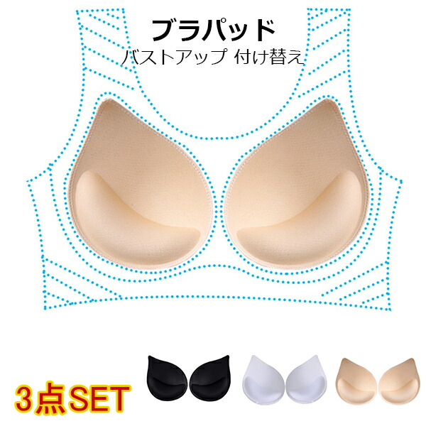 ブラパッド 3枚セット ブラパット 底上げ しずく型 厚さ3cm スポーツブラ ブラキャミ 付け替え 盛りパッド 谷間メイク そげ胸 引き寄せ パット フリーサイズ デコルテ
