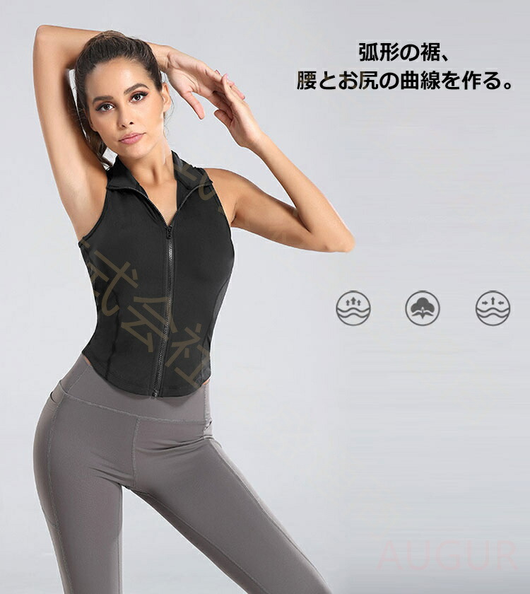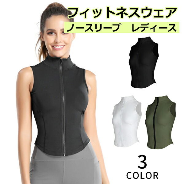 フィットネスウェア ノースリーブ レディース タンクトップ フロントファスナー 前開き スポーツウェア フロントジップ ジム ヨガ ウエア ダンス 筋トレ 吸汗速乾 通気性 ベスト mai ストレッチ