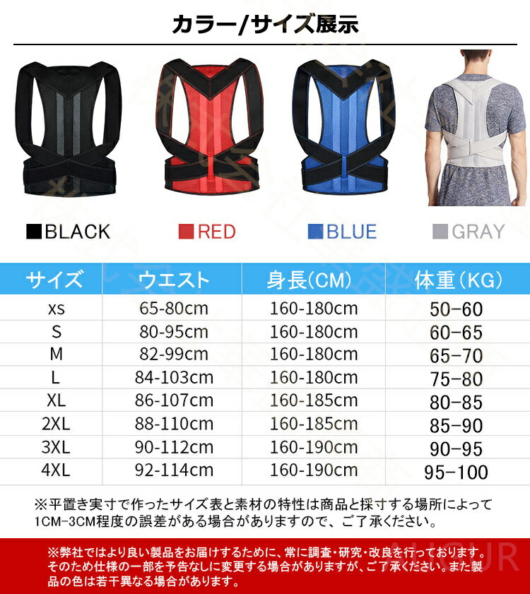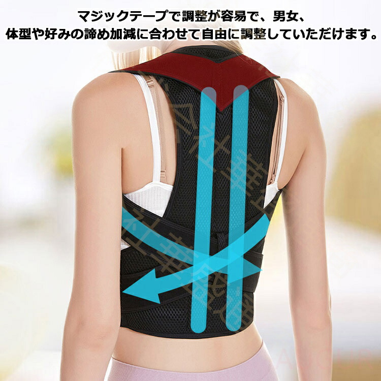 背筋伸ばし 背筋矯正ベルト 肩こり解消 BLACK RED BLUE GRAY XS S M L XL 2XL 3XL 4XL