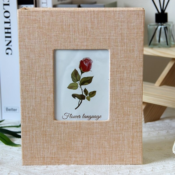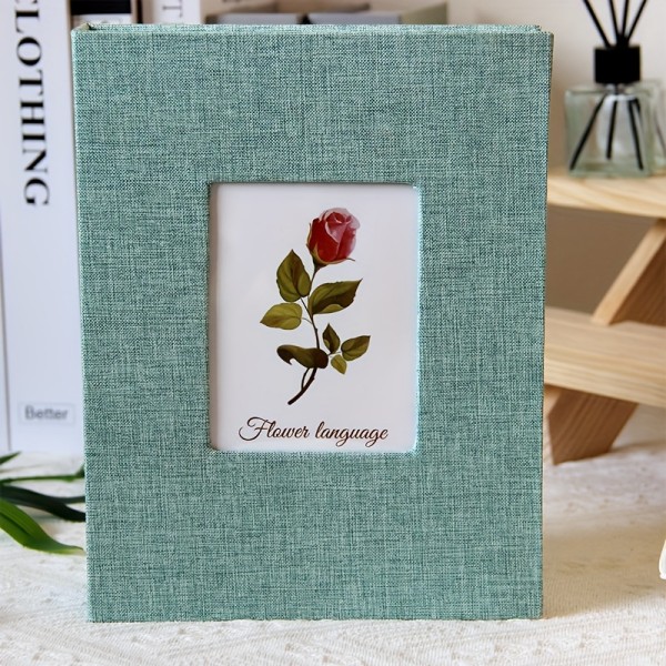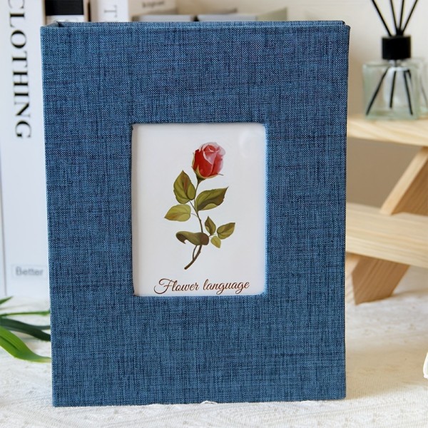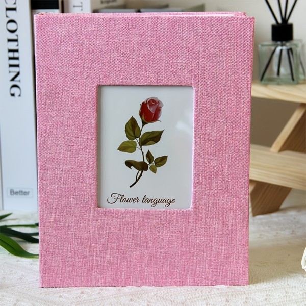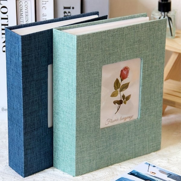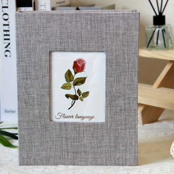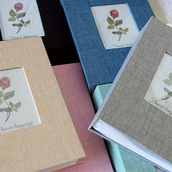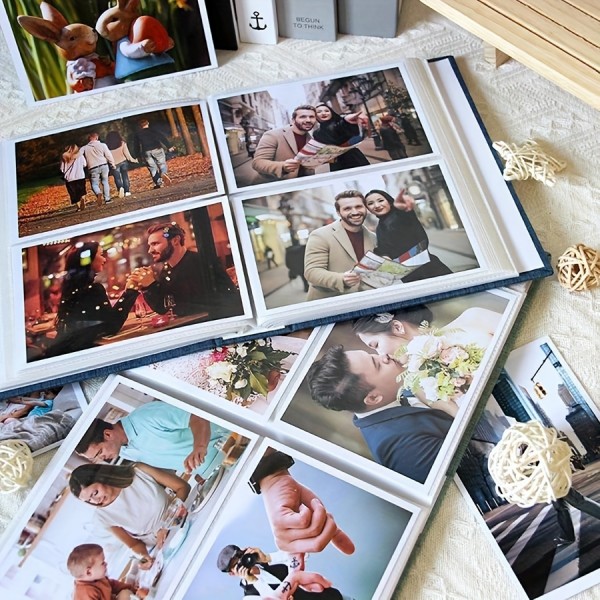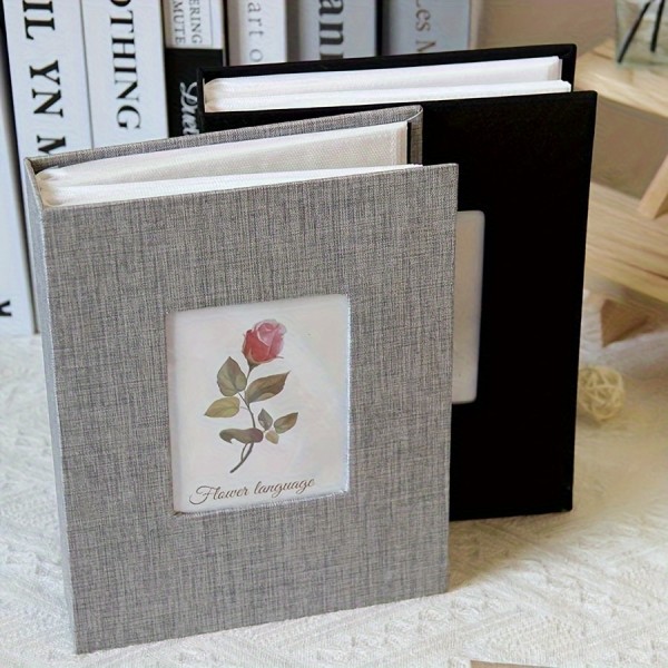 ファブリックリネンフォトアルバム、ピクチャーウィンドウ付き、ストレート形状、4x6インチ写真200ポケット、家族、結婚式、記念日、モダンシンプルデザインのメモリーブック