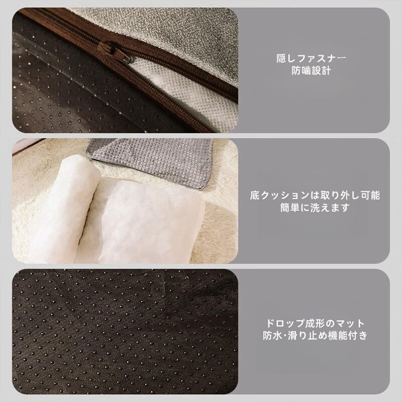 【滑り止めと洗濯可能】犬用ベッドカバーは取り外し可能で洗濯可能です。手洗いまたは中性洗剤で洗濯機で洗えます。ジッパーでカバーを簡単に取り外して、手洗いまたは洗濯機で洗えます。滑りにくいのでどこにでも安心して置けます。