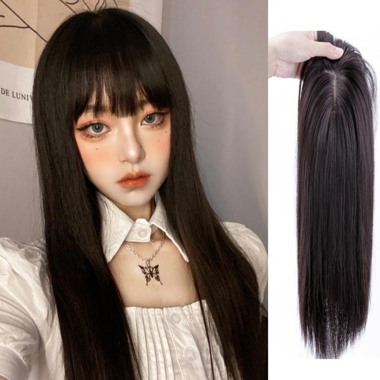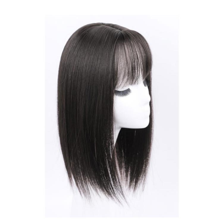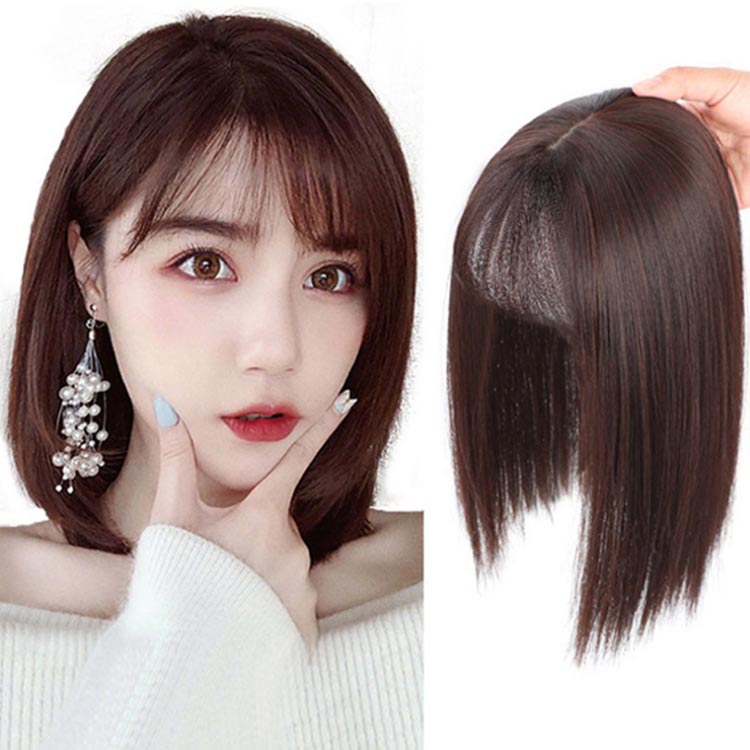 つむじ付き 前髪ウィッグ 人工毛 かつら トップカバー ヘアピース 白髪隠し ウィッグ ナチュラル セミロング 薄毛対策 ショート 増毛 自然 部分ウィッグ パッツン前髪 通気性 簡単装着