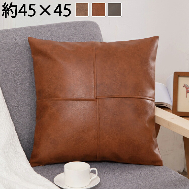 クッションカバー 約45×45cm 正方形 ブラウン グレー 北欧 PUレザー おしゃれ イースター 45×45cm ナチュラル カジュアル 夏 インテリア かわいい 家庭用 飾り 模様替え