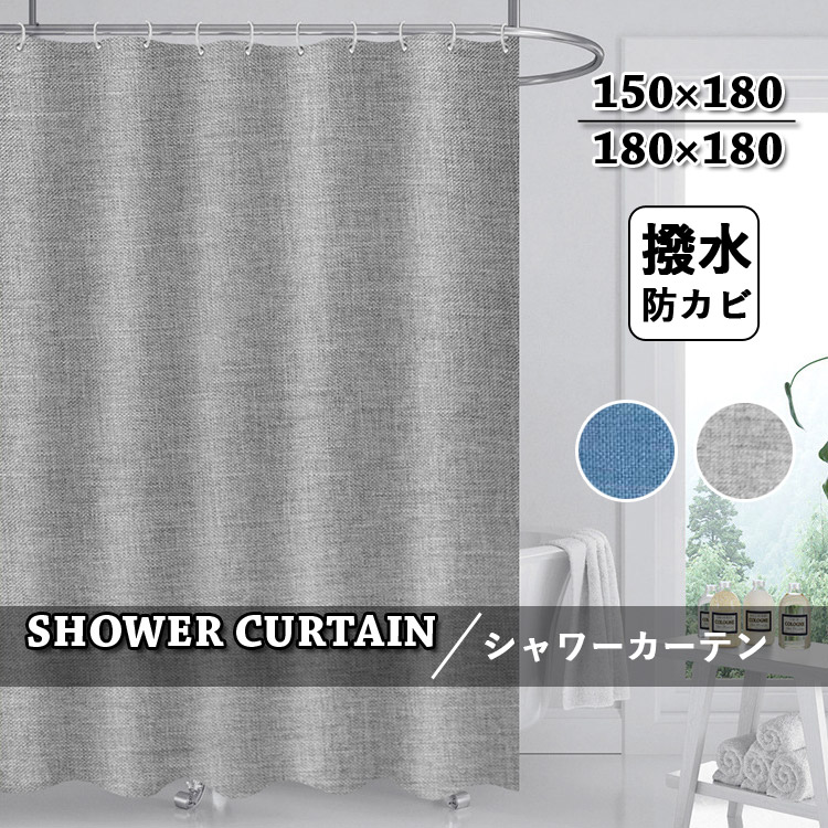 シャワーカーテン 防カビ 撥水 麻 無 日用品雑貨 文房具 手芸 人気 ブルー グレー 幅150cm×丈180cm 幅180cm×丈180cm