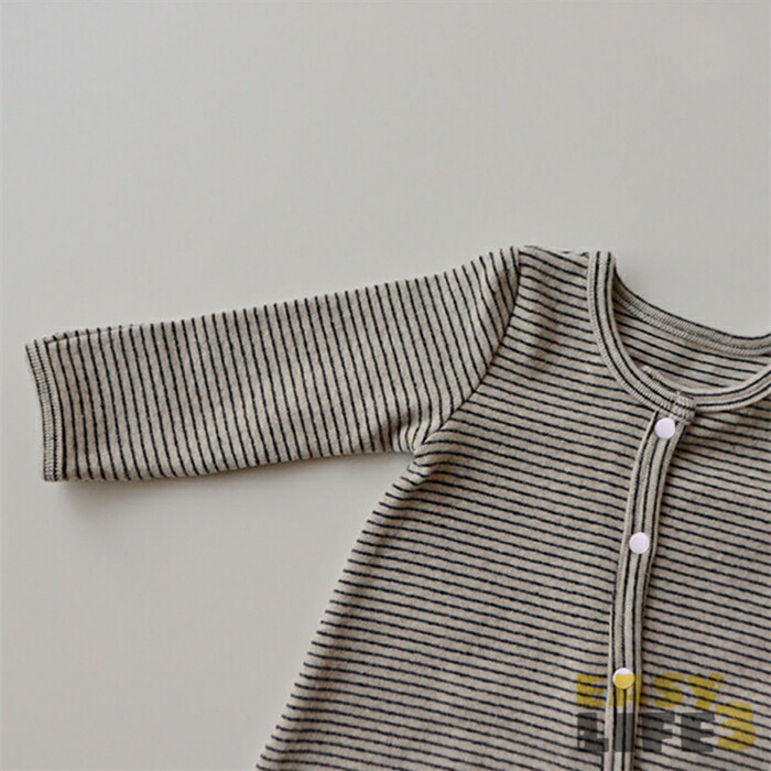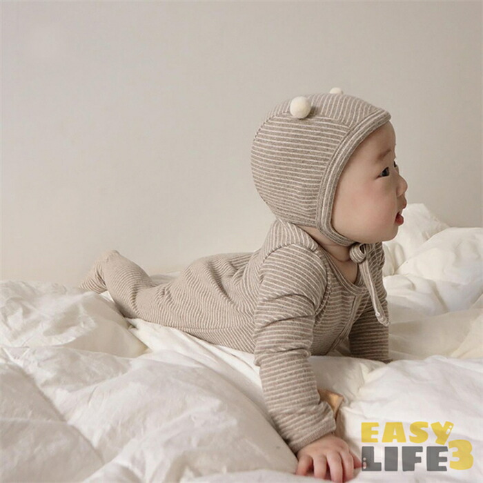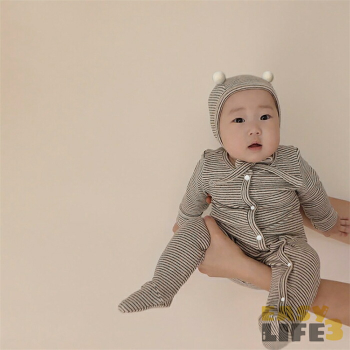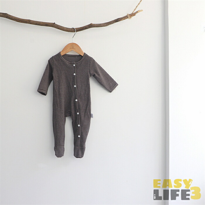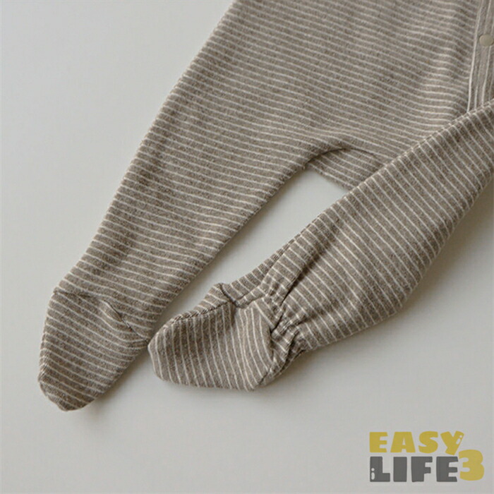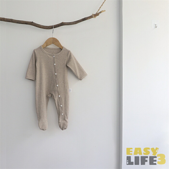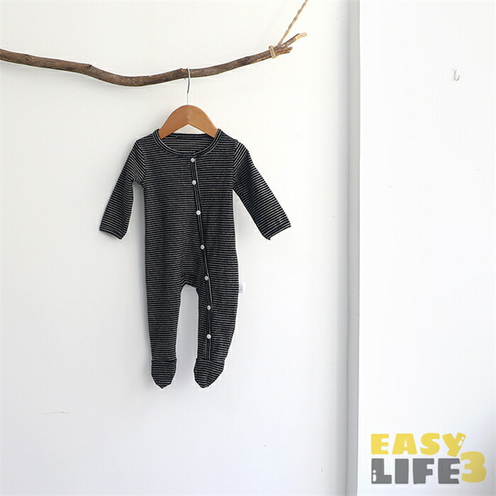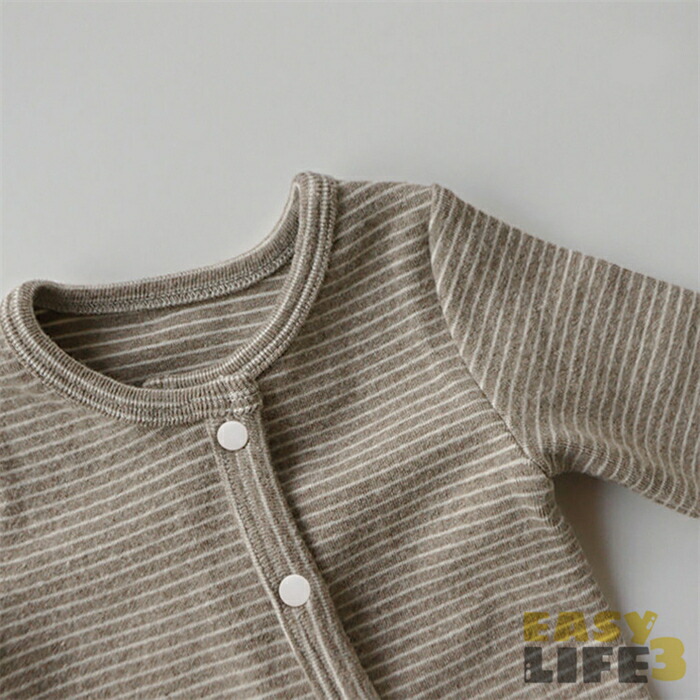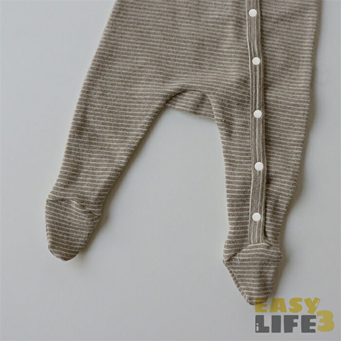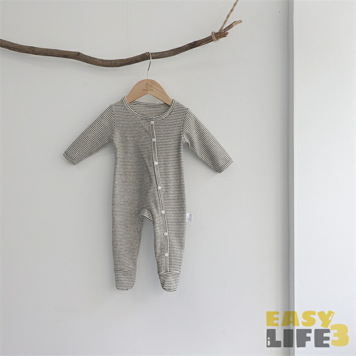 ベビー服 ロンパース カバーオール 男の子 女の子 春秋 ボーダー 横縞 長袖 足つき 開襟 スナップボタン 着脱便利 柔らかい 着心地いい 普段着 寝間着 室外着 ルームウエアー パジャマ 室内着
