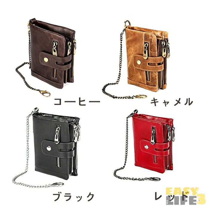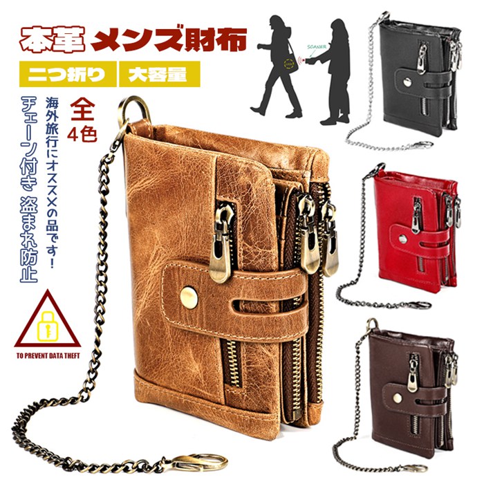 【ウォレットチェーン付き】本革 二つ折り財布 盗まれ防止 メンズ 小銭入れ 大容量 コインケース 無地 財布 ファスナー 男性 革 海外旅行 二つ折り カード入れ オシャレ 紳士用 お札入れ カッコイイ コイン収納 大人 カジュアル 軽量 欧米風 使いやすい 小物入れ 多機能 コンパクト 長持ち ギフト プレセント 彼氏 旦那 父の日 就職祝い 卒業祝い 20代 30代 40代 50代