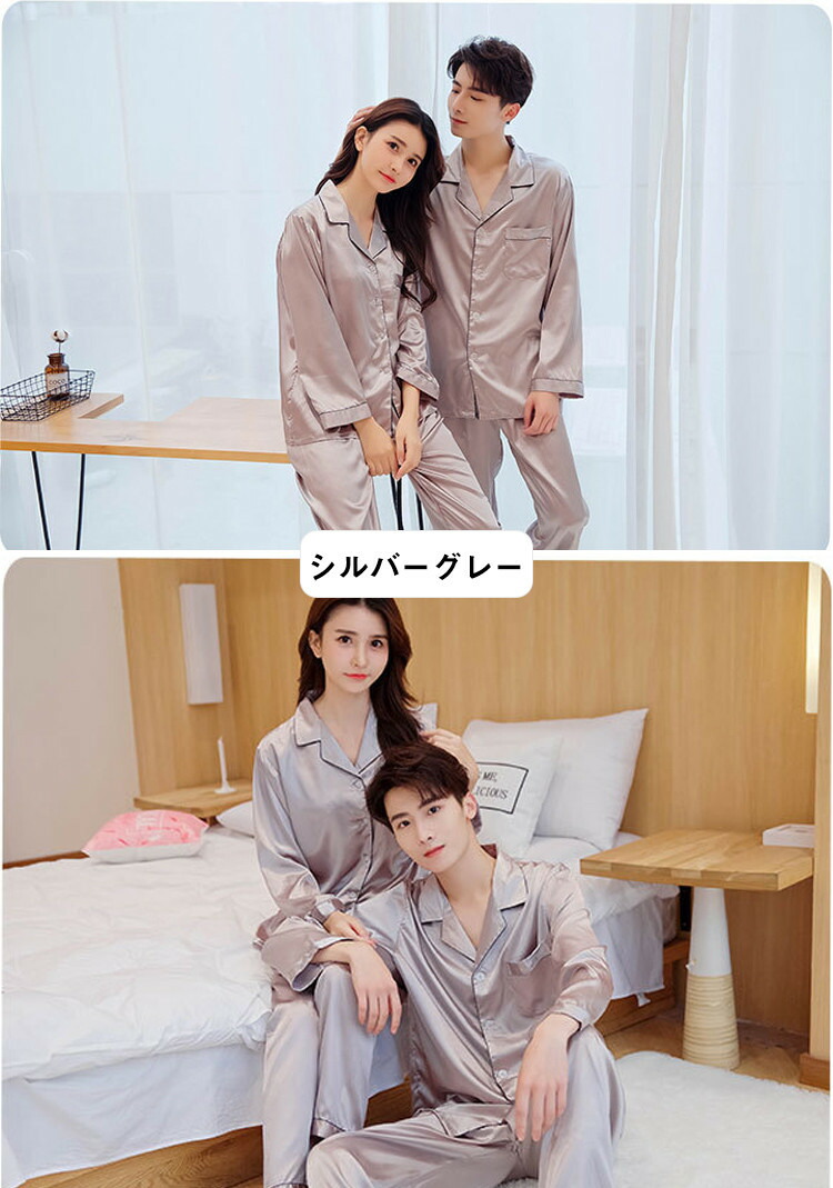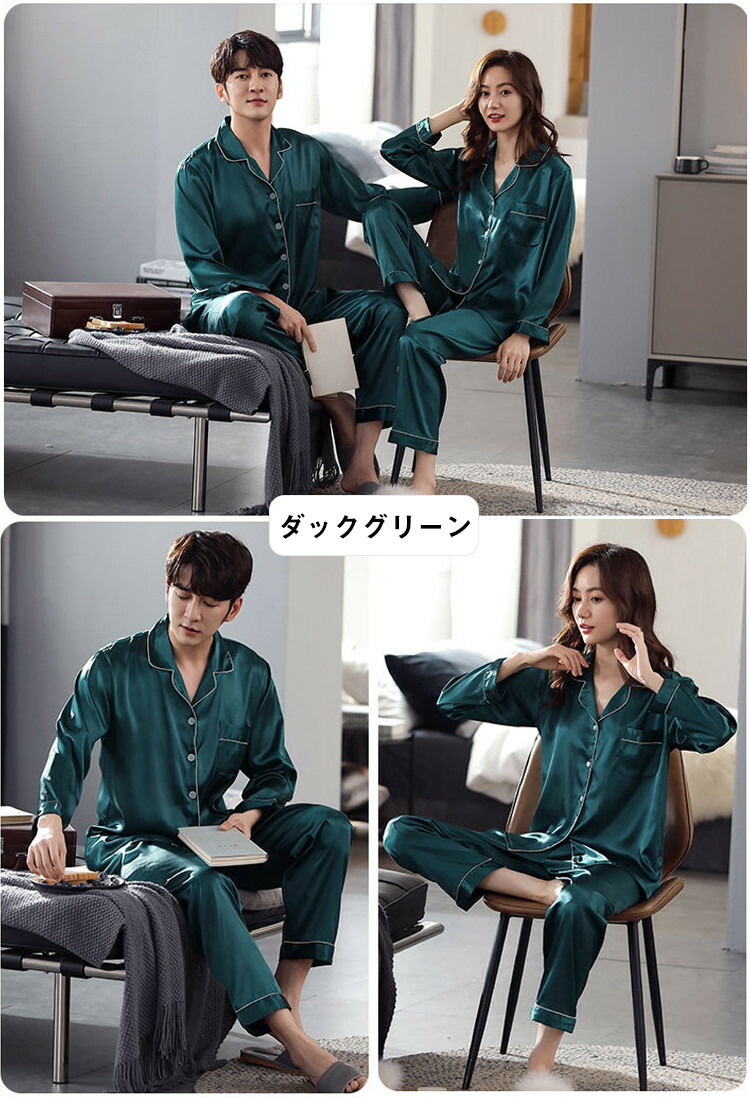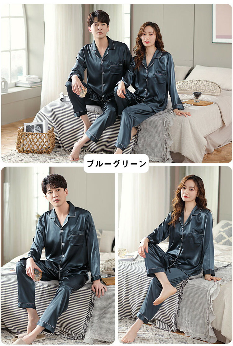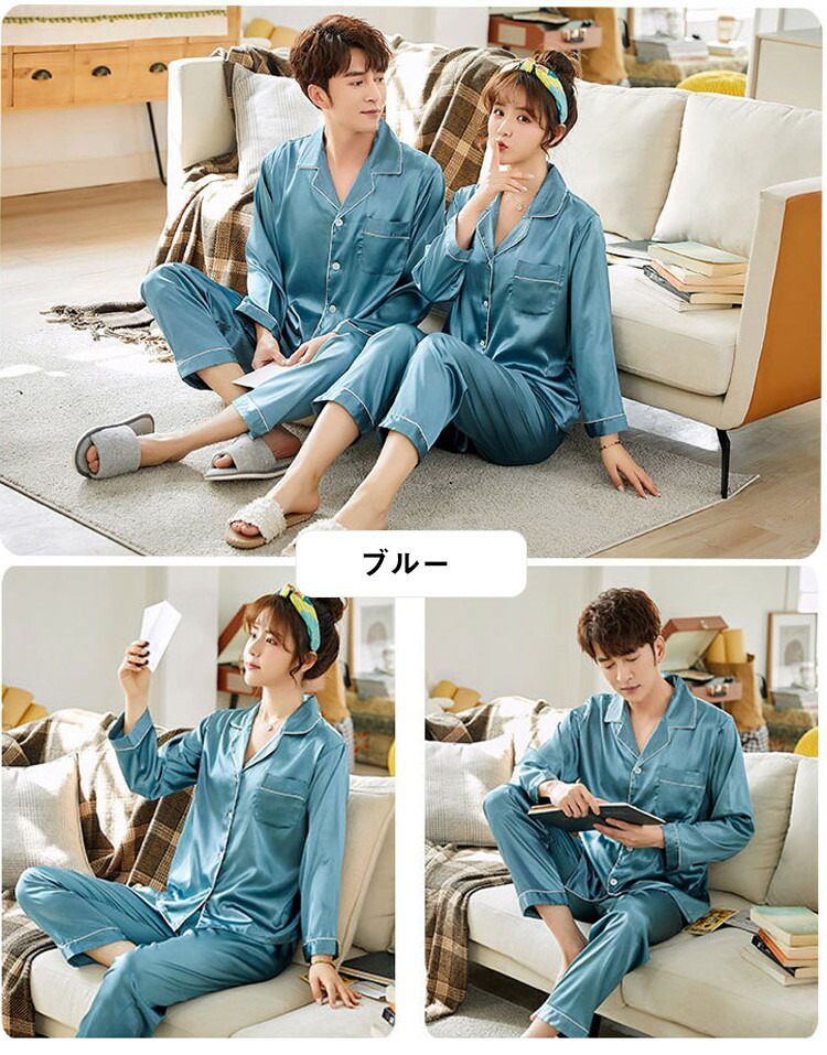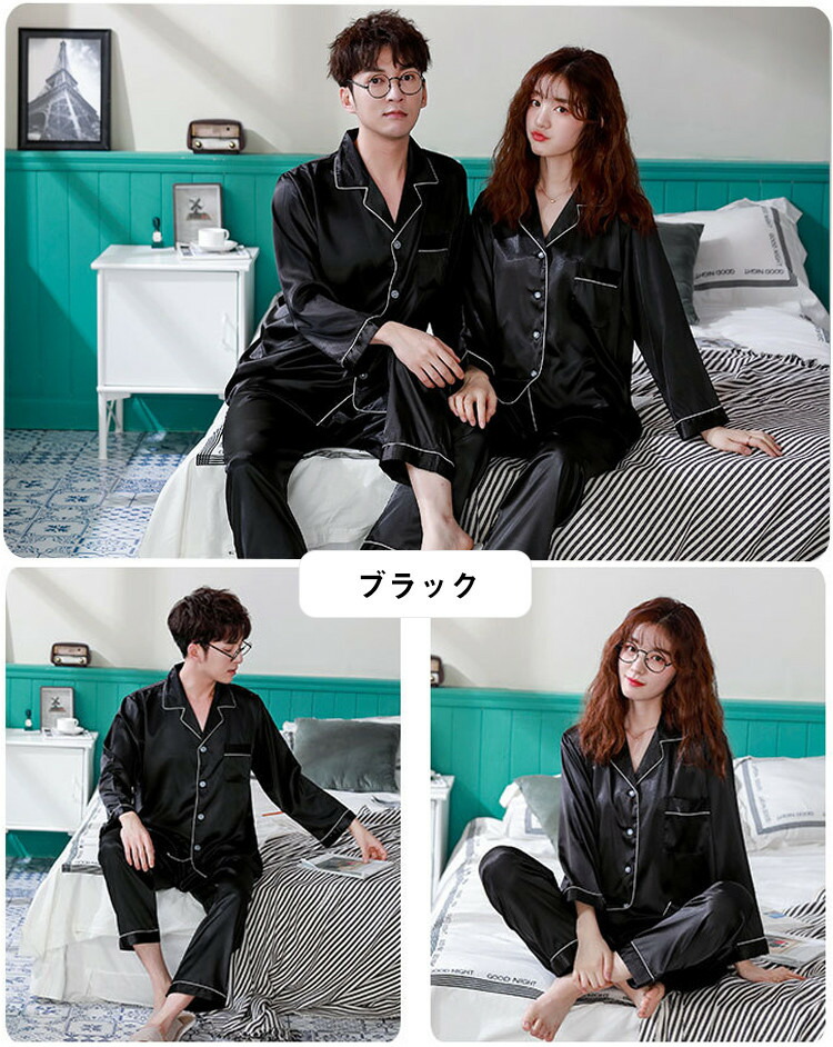 全10色 ペアパジャマ カップル ペア インナー 下着 ナイトウエア 豊富 長袖 半袖 ブルーグリーン ダックグリーン ブラック ホワイト ブルー ネイビー レッド シャンパン シルバーグレー ピンク