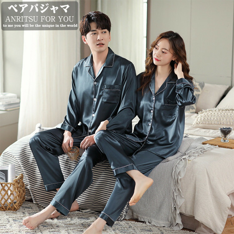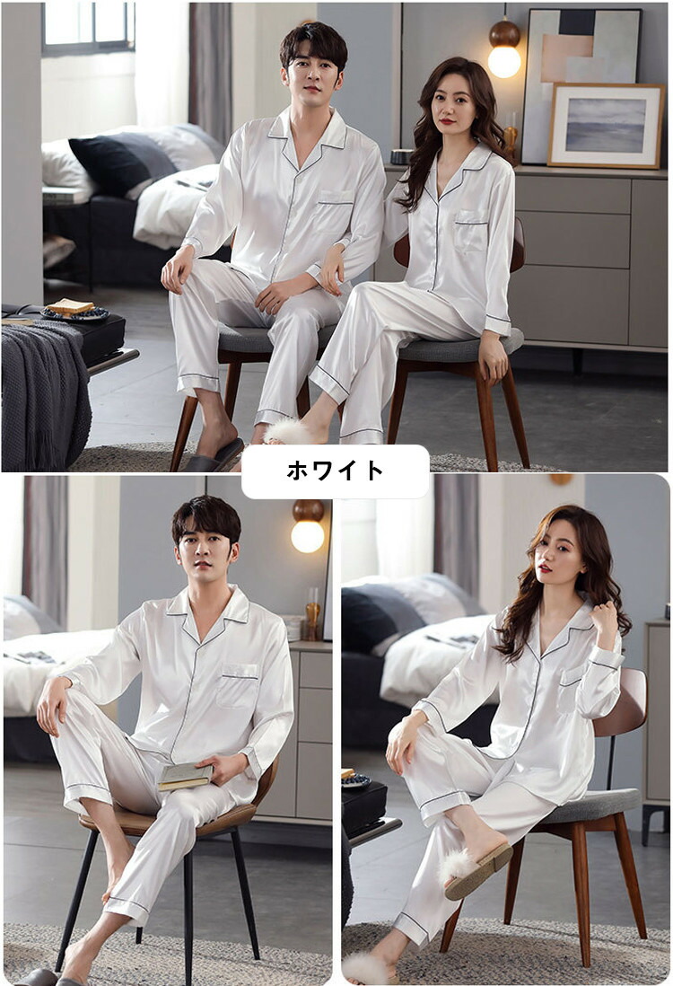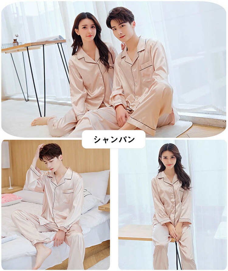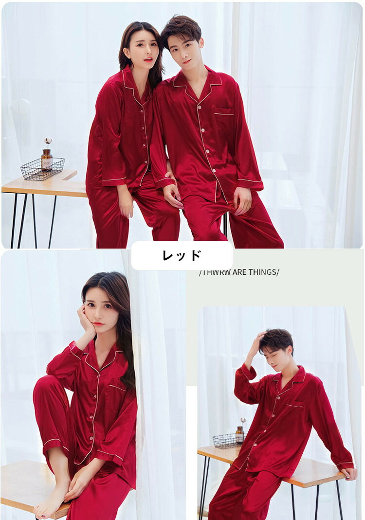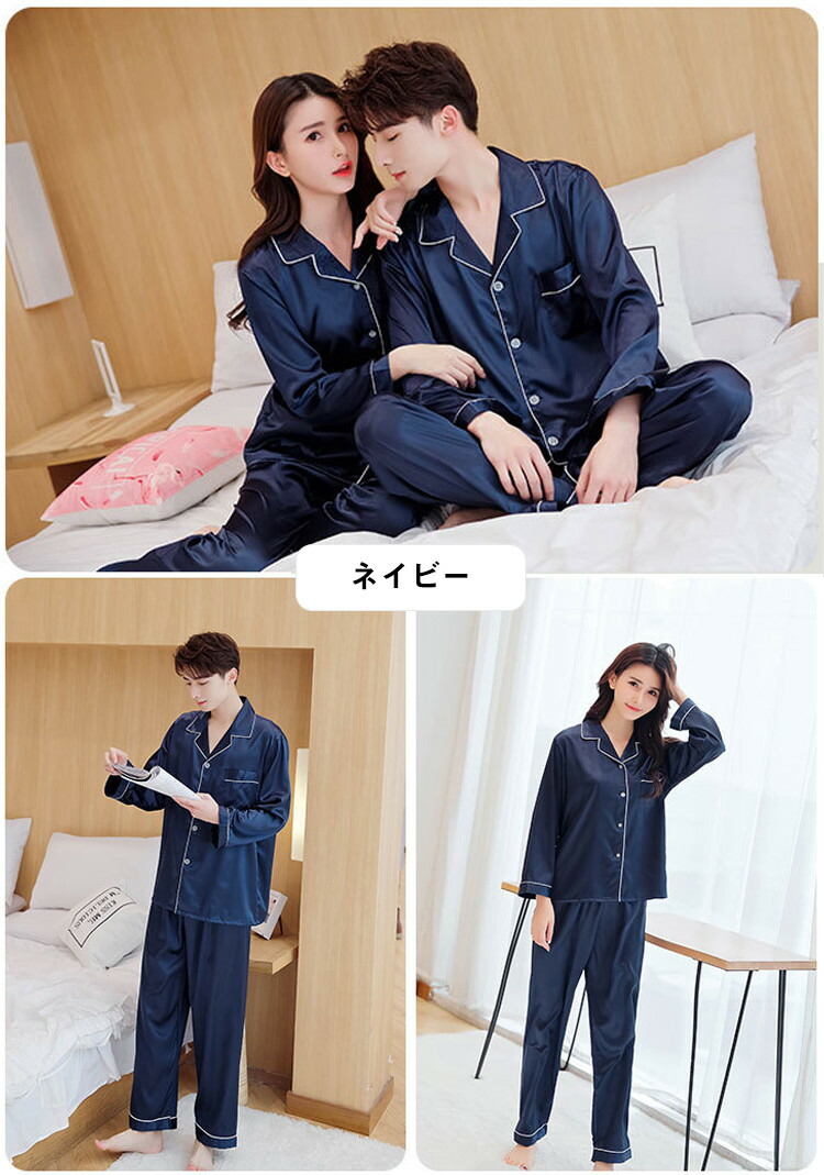 全10色 ペアパジャマ カップル ペア インナー 下着 ナイトウエア 豊富 長袖 半袖 ブルーグリーン ダックグリーン ブラック ホワイト ブルー ネイビー レッド シャンパン シルバーグレー ピンク