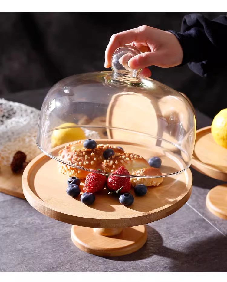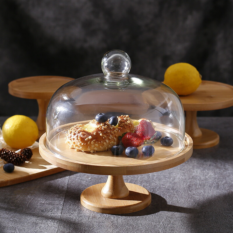 透明なガラスドームを備えた蓋付きの大きなケーキスタンドで、ベースは竹製のトラフに完全に埋めることができます。ケーキやおやつを飾るのに理想的な方法です。シンプルなデザインがケーキを星に変えます。ケーキの保管に最適です。ガラスカバーは透明なので、トレーに置いた食べ物が見えます。