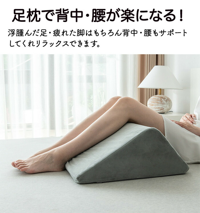 三角枕 脚枕 足枕 足まくら 膝枕 フットケア 高反発 弾力性 柔軟性 柔らかい 膝下枕 ひざケア 背もたれ リラックス 快適 疲れない 足おき 膝下 背中 反り腰 妊婦 負担 乗せ 介護 疲れ 軽減