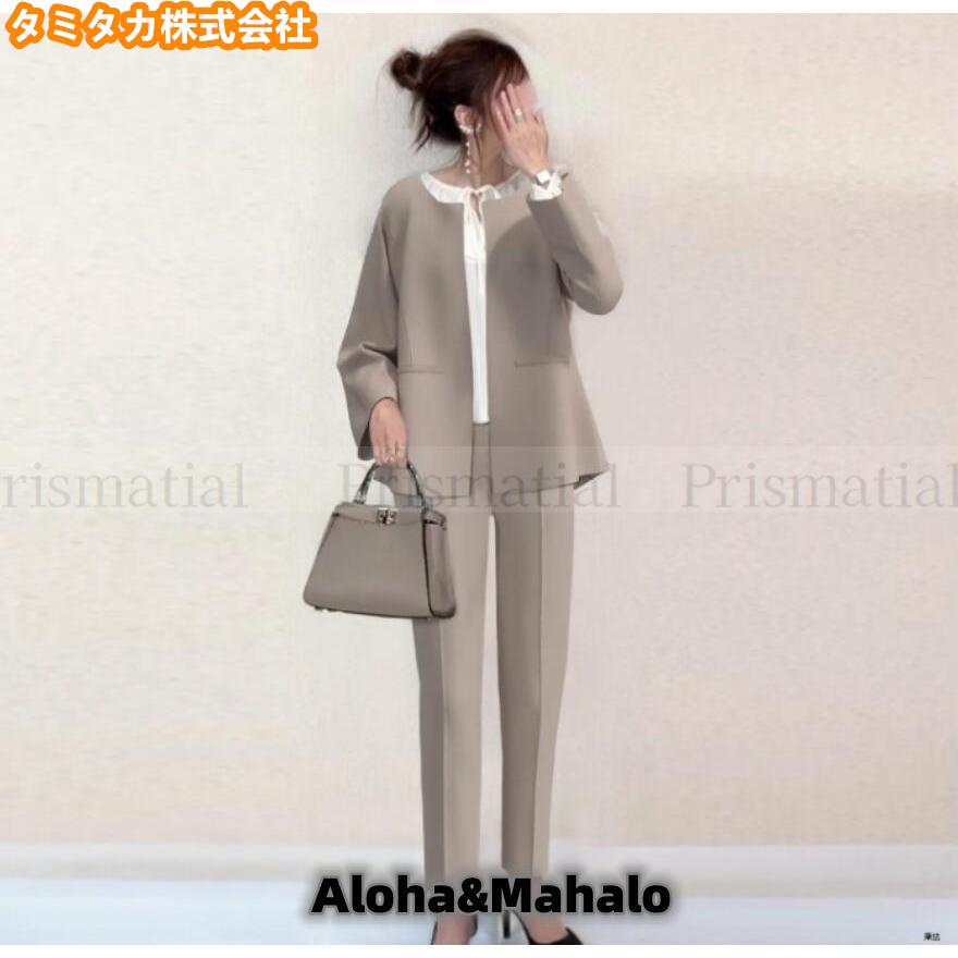 春 スーツ+パンツ レディース セット レディースファッション 特集 ベージュ ブラック ネイビー S M L