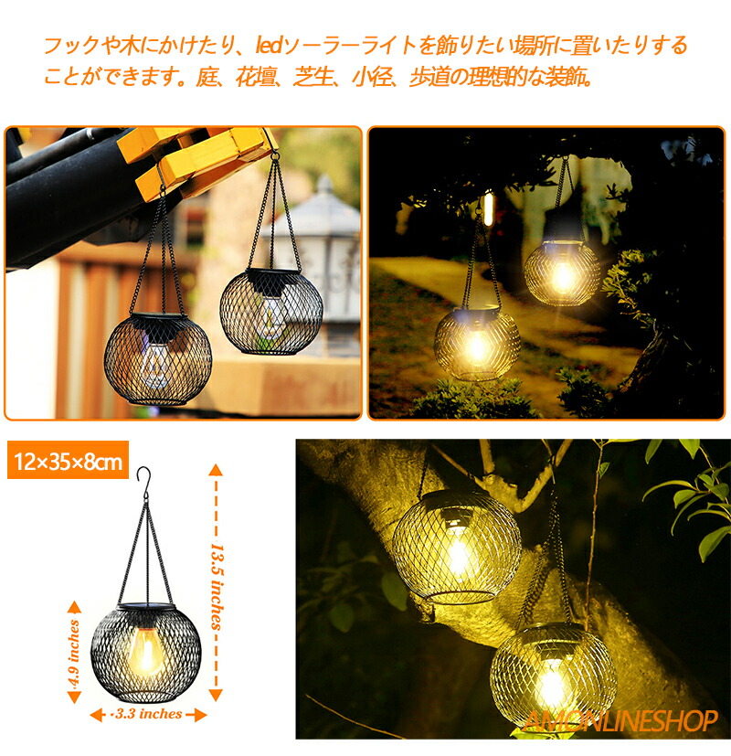 ソーラーライト 屋外 防水 吊り下げ式 ソーラーランタン led ガーデンライト おしゃれ ガーデン 庭園 ライト 装飾 ブラケットライト 自動点灯 自動消灯 暖かみ 省エネ 車道 歩道 庭 玄関先