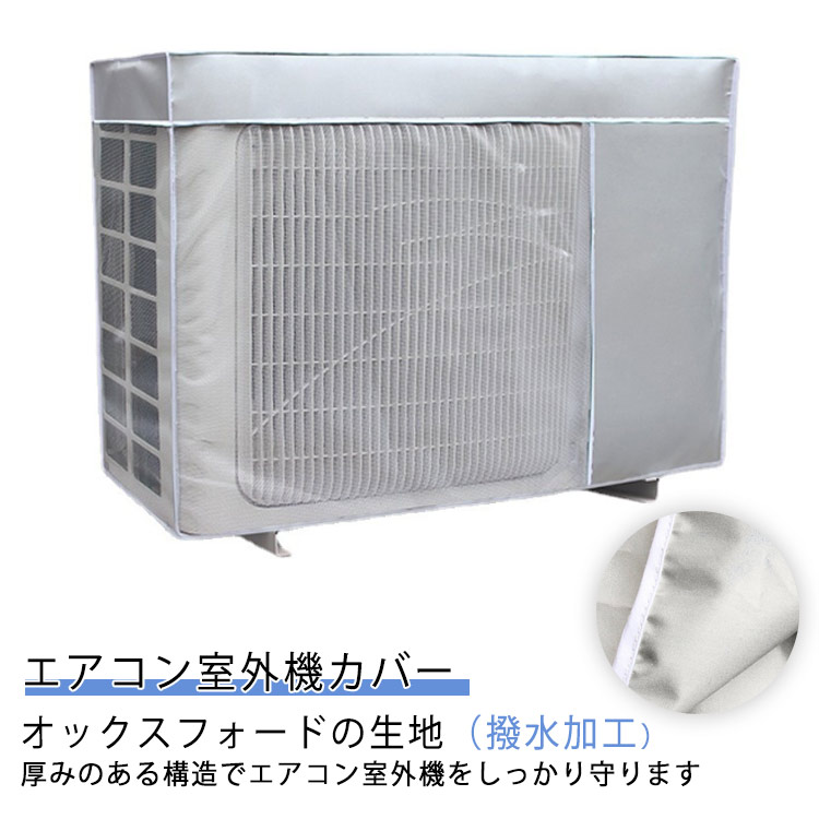 【エアコン室外機カバー】オックスフォードの生地(撥水加工)厚みのある構造でエアコン室外機をしっかり守ります。エアコンの設置に必ず必要な室外機は、屋外に設置するため、むき出しで放置しておくと、夏場の直射日光や、冬の積雪、激しい雨や強風など様々な悪天候によりトラブルを招くことがあります。このエアコン室外機カバーがあれば室外機を悪天候から守ります。