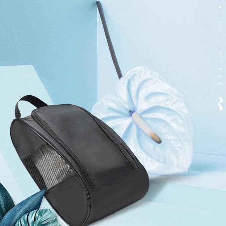 両サイドメッシュ切り替えで、通気性抜群、気になる匂いが困らないシューズポーチ。