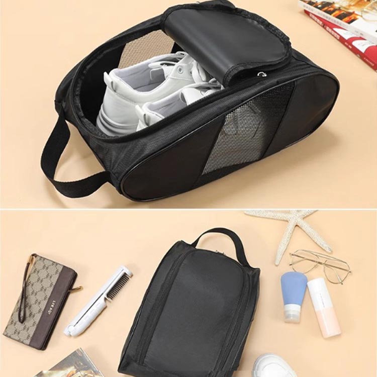 ゴルフシューズケース 靴入れ ゴルフ シューズバック 通気性 サイドメッシュ シューズポーチ 大容量 大きめサイズ シューズバッグ 持ち手付き シューズ袋 スポーツ 部活 トラ ダブルジッパー