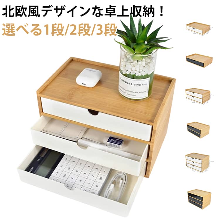 ホワイト 卓上収納 竹製 机上収納 小物収納 引き出し 収納ボックス 卓上 デスクトップ収納 2段 1段 チェスト おしゃれ 白 インテリア オリジナル 卓上収納ケース ブラック 小 3段