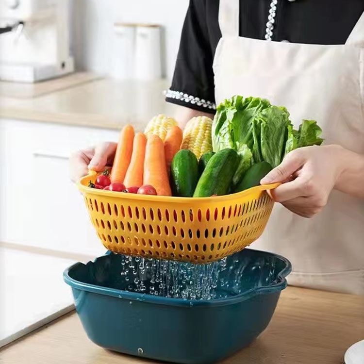 コンパクトに収納できる、ザルとボウルの3点セット。