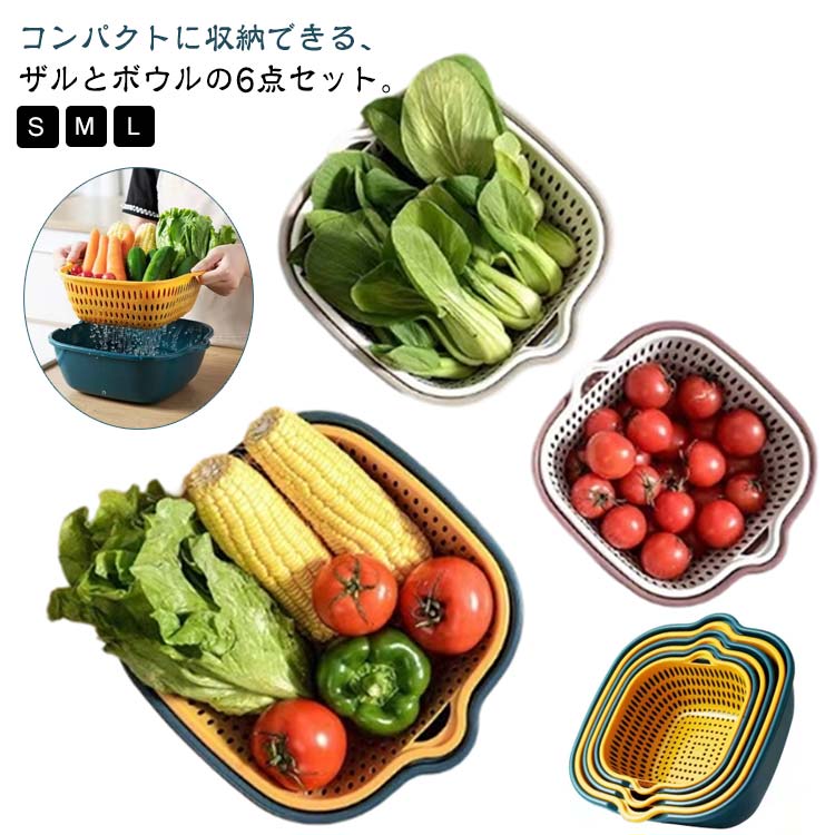 ザルとボウルをそれぞれ、S・M・Lの3サイズが一緒になったお得なセットです。