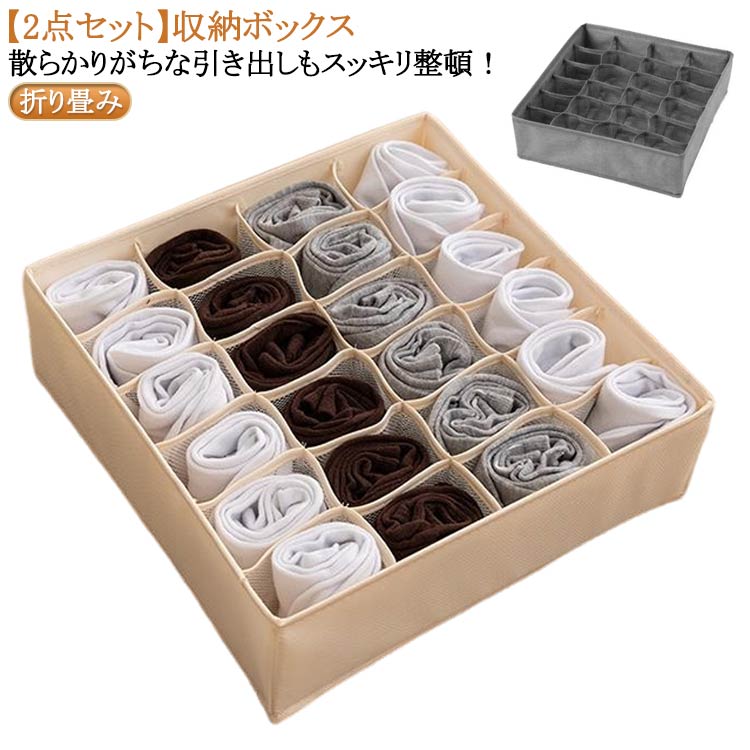 靴下収納ボックス 下着収納ボックス 折 ベージュ(24マ2点セット) グレー(24マ2点セット) ベージュ(24マ)+グレー(24マ)