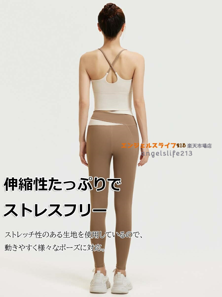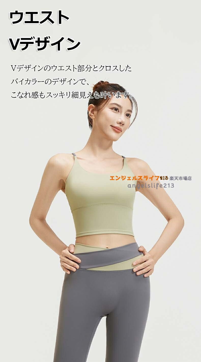 ヨガウェア 上下セット レディース ブラトップ レギンス 2点セットアップ 無地 ヨガパンツ バイカラー 薄手 速乾性 ヨガトップス パッド一体型 クロップド丈 ハイウエスト 運動着 ホ バッククロス