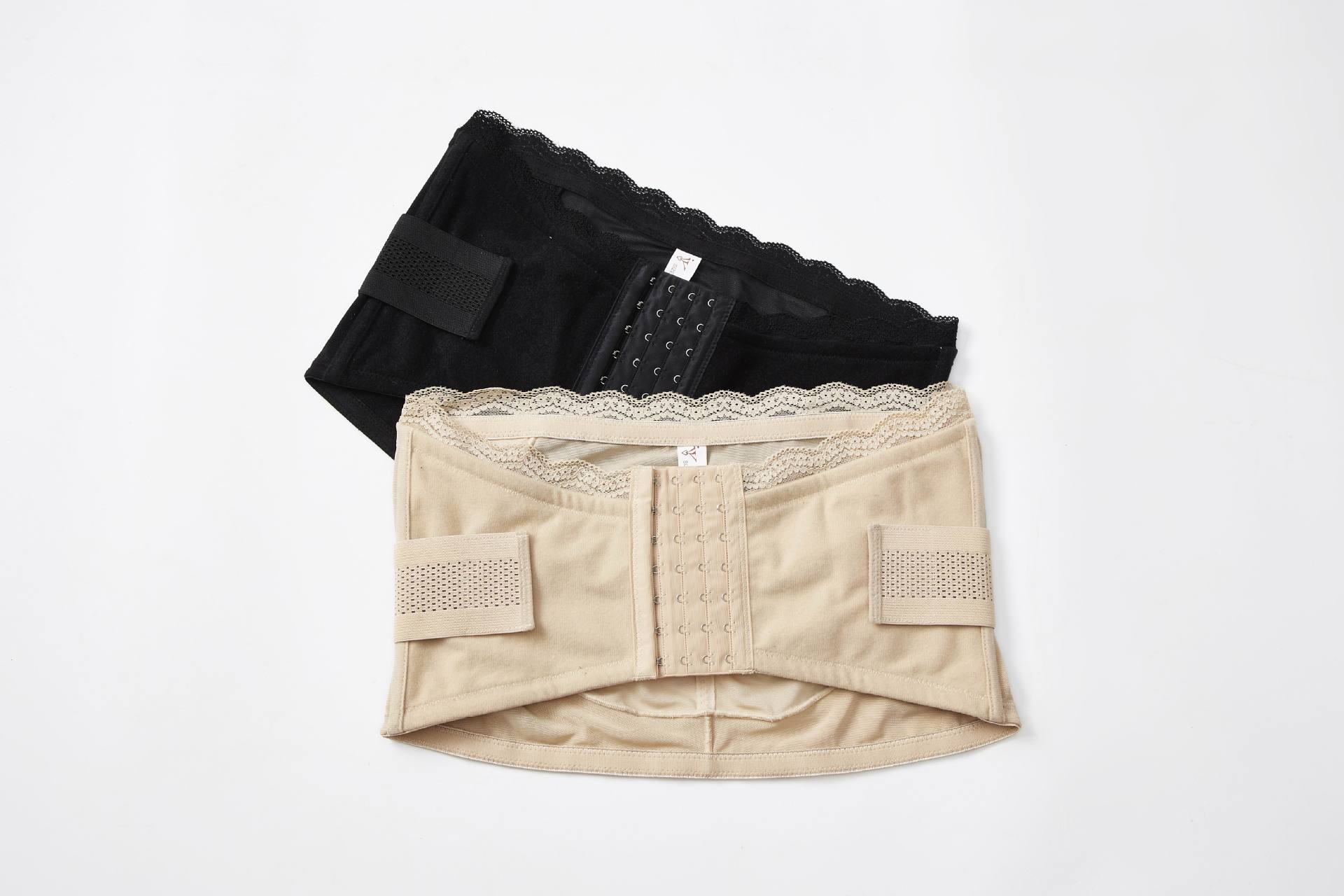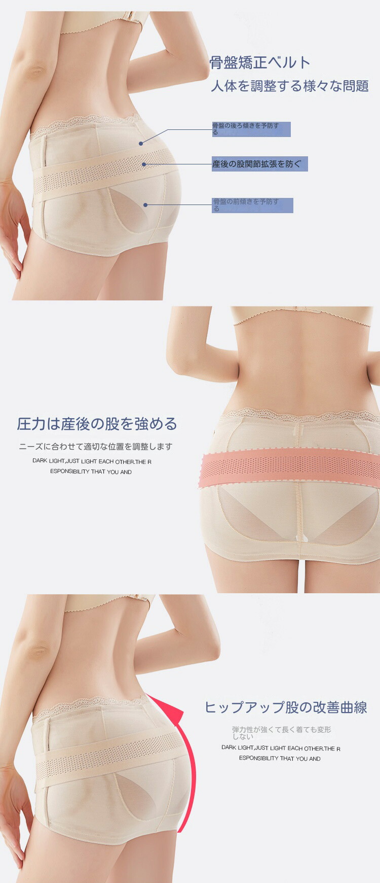 【骨盤ベルトがずれにくい構造と汗の吸収と蒸れを抑える素材をベルト内面に使用】 左右両サイドから骨盤をしっかり押さえ込み、尚且つ滑り止めのステッチを補強して、座った姿勢や屈んだりする姿勢による、ベルトのずれを最小限に抑える構造に設計しています。 ベルトの調節は、簡単でできてサイズの調整も快適。産前産後でも使用できます。