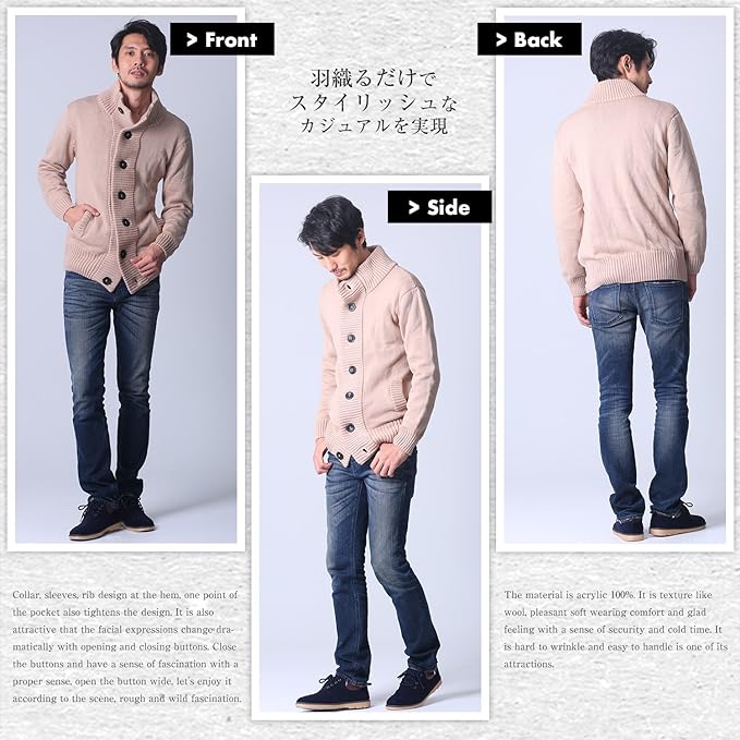 ニット メンズ カーディガン ジャケッ トップス カーディガン 新作 ベージュ ブラック ブルー M L XL