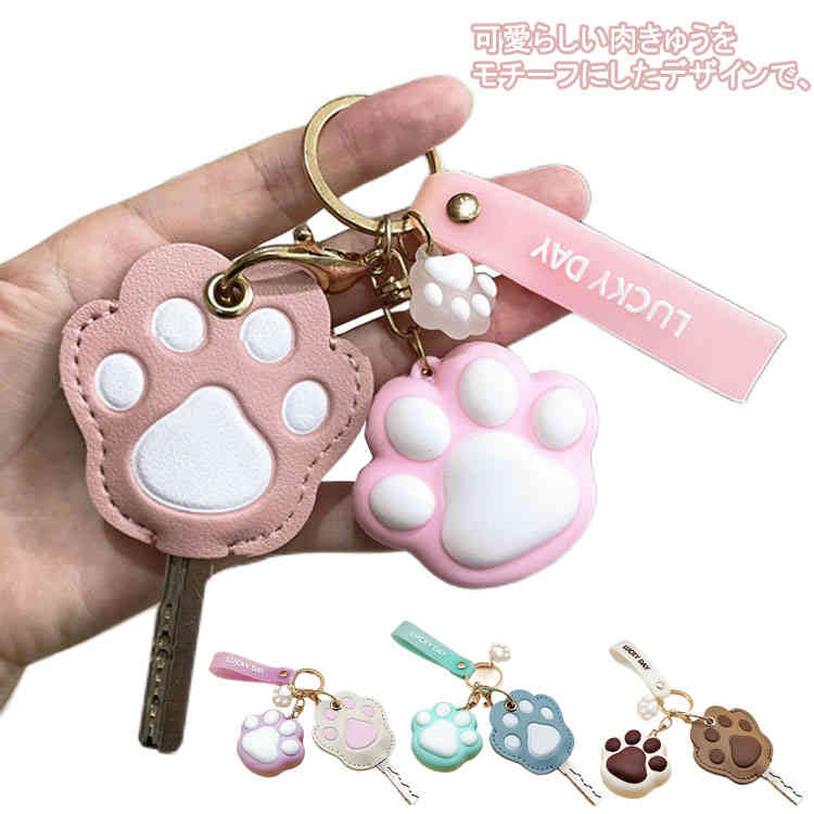 キーカバー 猫 ねこのキーカバー キーホルダー キーケース ねこ 肉球 鍵 かわいい フェイクレザー 革 カギ キーキャップ