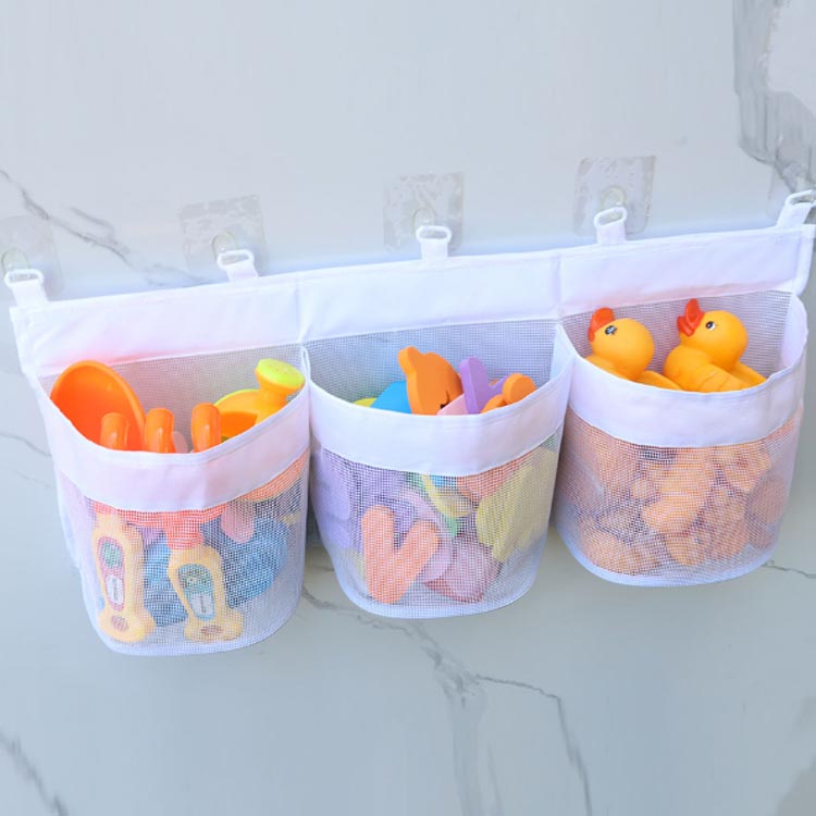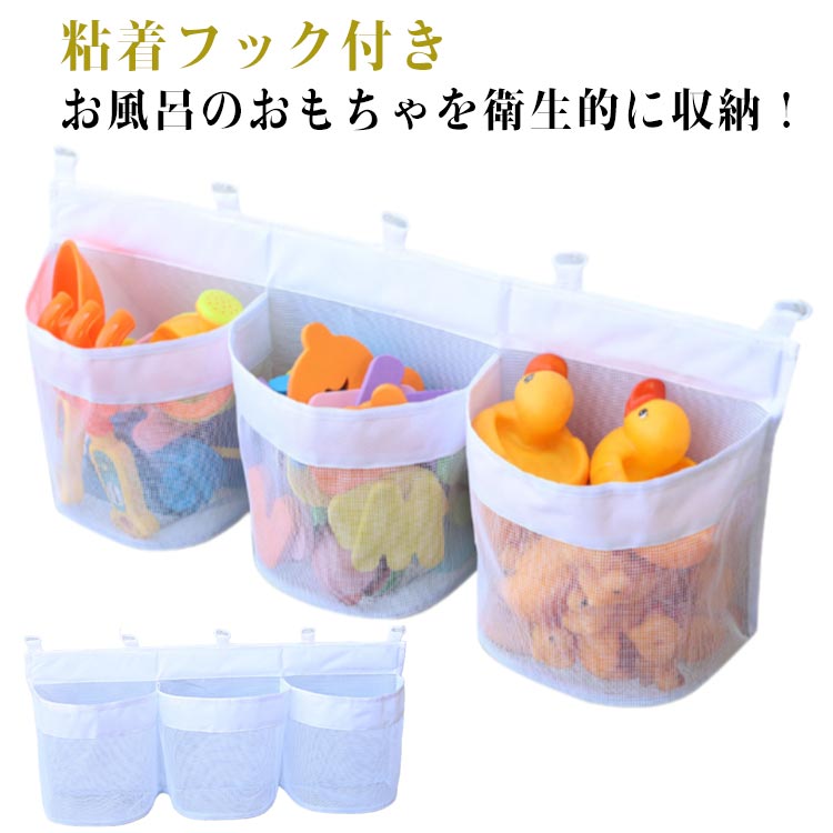 メッシュケース 収納 お風呂用 おもちゃネット 3連 片付け 粘着フック付き 壁掛け 浴室 おもちゃ 子供 バス用品