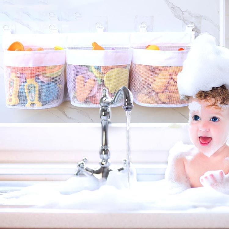 ・水切れの良いメッシュ生地を使用しているので、お風呂で遊んだおもちゃを清潔に収納しておくことができます。