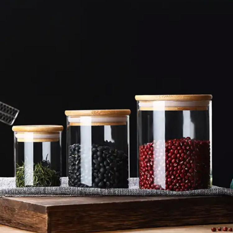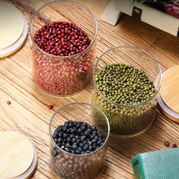 丸型 密閉保存容器 パッキン付き クリア 保存容器 5個セット 木蓋付き 砂糖 お塩 密閉 容器 ストッカー ガラス瓶 ガラス コーヒー豆 調味料 キャニスター ポット 丸型容器 北欧 茶葉