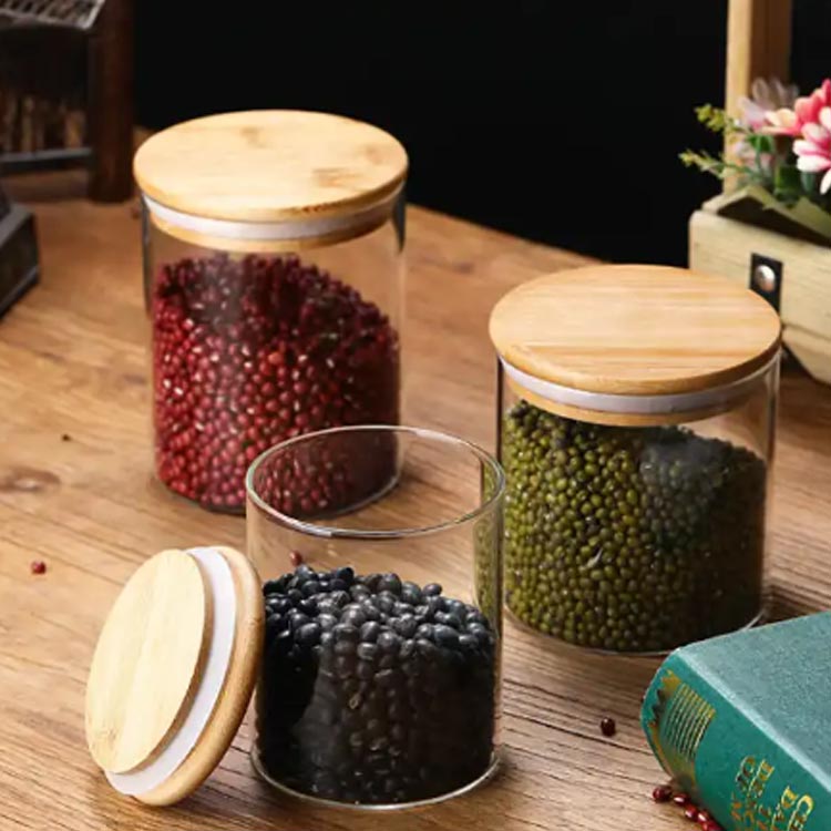 木蓋で温かい印象を与えるキャニスターです。木蓋はパッキン付きで食材を湿気から守ります。