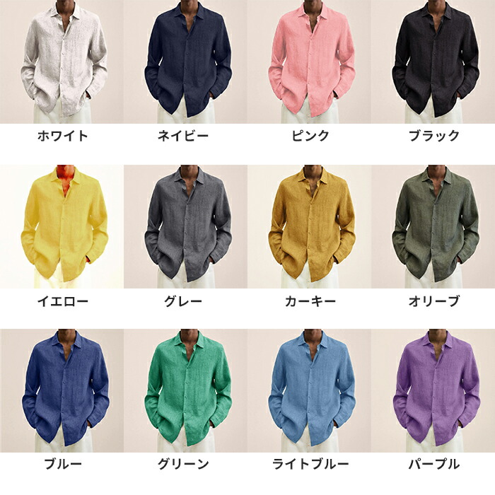 シャツ メンズ 綿シャツ リネンシャツ トップス カジュアルシャツ 新作 ホワイト ネイビー ピンク ブラック イエロー グレー カーキー オリーブ ブルー グリーン ライトブルー パープル M L XL 2XL 3XL 4XL 5XL