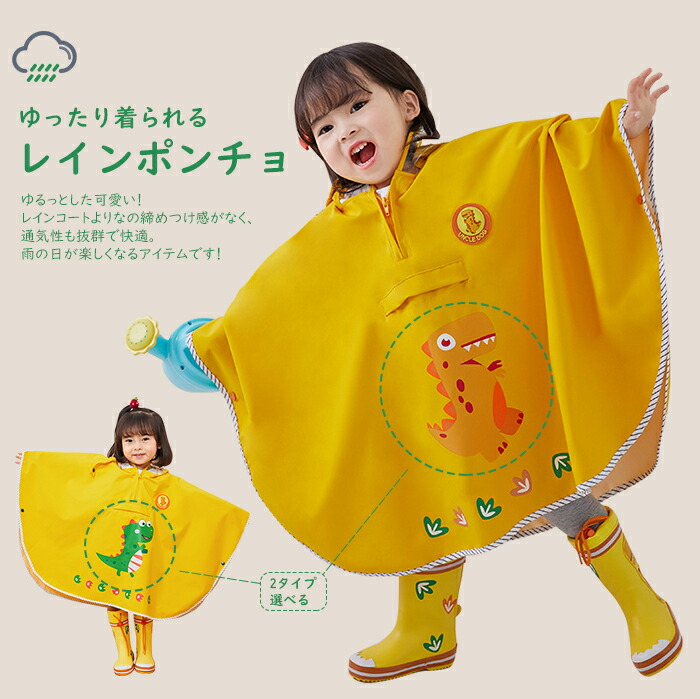 レインポンチョ レインコート キッズ レインウェア カッパ 雨具 通園 通学 小学生 保育園 幼稚園 子供 恐竜 子供用 携帯 旅行 防水 梅雨 低学年 クリア視野 防水仕様 女の子 雨がっぱ