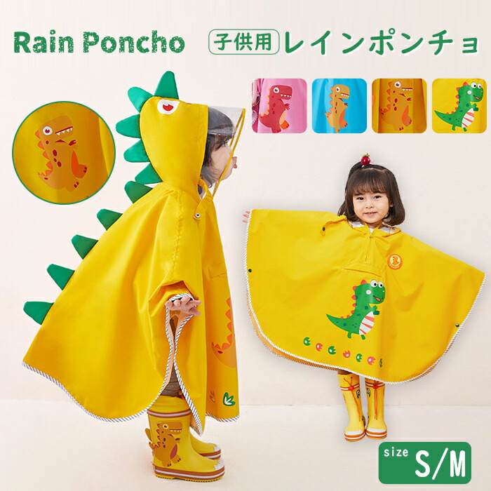 通学通勤 超軽量 防塵防雪 防風防水 ロング丈 raincoat 雨の日 レインポンチョ レインコート キッズ レインウェア カッパ 雨具 通園 通学 小学生 保育園 幼稚園 子供 恐竜 子供用 携帯 旅行 防水 梅雨 小学生 低学年 雨がっぱ クリア視野 防水仕様 女の子 男の子 ピンク イエロー ブルー S/M