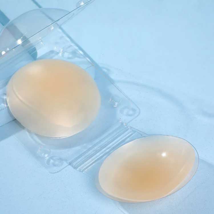 体温に反応して吸着する高性能シリコンでトップバストを包み込むように被せて10秒程度、手で押さえるとピタッと張り付きます。